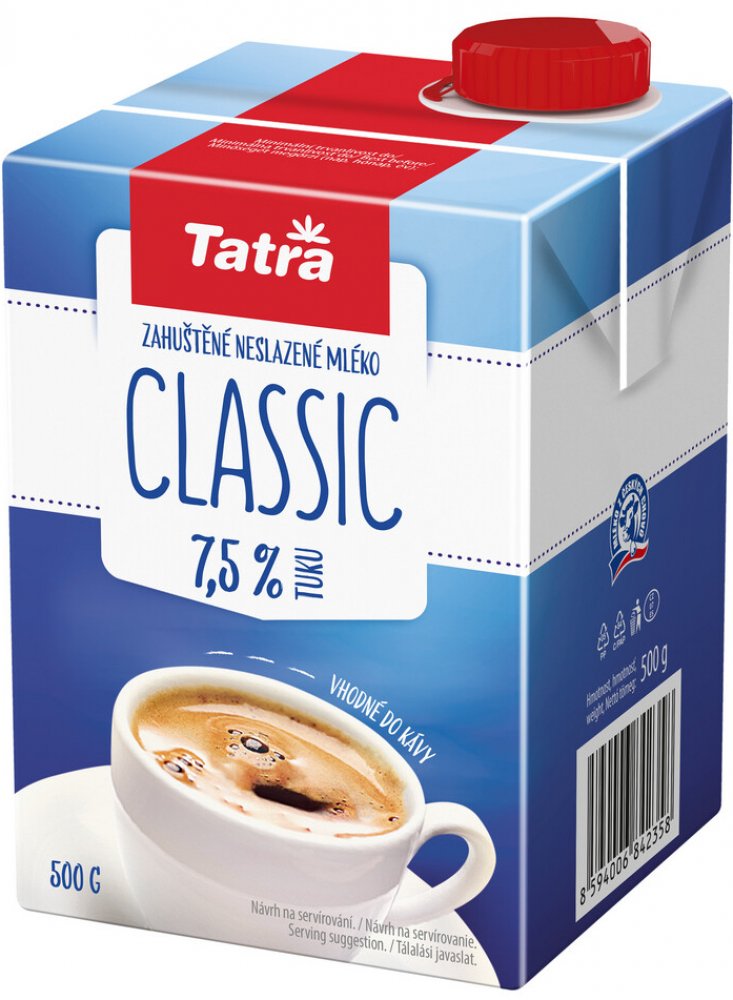 Tatra Classic Zahuštěné neslazené mléko 7,5% 500 g