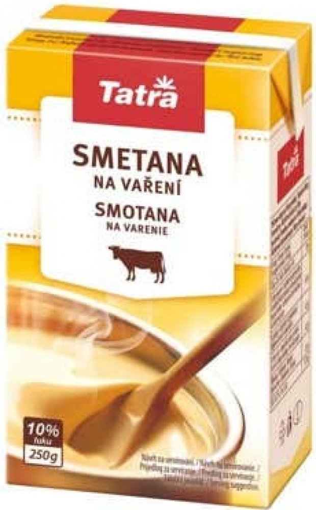 Cena se může v jednotlivých regionech lišit. -- Trvanlivá smetana na vaření s obsahem tuku min. 10%. Neobsahuje zbytečně moc tuku, jen tolik, aby si zachovala klasickou chuť. Tahle smetana je skvělá ke zjemnění omáček nebo i k zalévání různých zapékaných pokrmů. Zajímavost o produktu: Víte, že smetana je nejtučnější část mléka, která se usazuje na jeho povrchu a získává se sbíráním nebo odstřeďováním? Tip:Vyzkoušejte ji například do panna cotty, do frappe, přidat do mléka a vyrobit vylepšený jogurt, nebo připravit CrČme Anglaise (vanilkovou omáčku). Nejvíce ji ale využijete ke zjemnění různých druhů omáček a na zapékání. O výrobci: Mlékárna Hlinsko spustila výrobu v roce 1943. Po 70 letech zpracovává necelých 200 milionů litrů mléka ročně a výrobní program byl rozšířen o trvanlivé mléko a smetany. V roce 2015 byly na trh uvedeny tvarohy pod značkou Tatra.