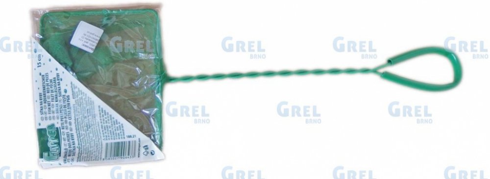 Zelená drátěná akvarijní síťka obdélníkového tvaru. Nepostradatelná součást vybavení akvaristy. Drát je obalen bužírkou a je v jednom kuse. Na konci rukojeti je očko k zavěšení. Držátko lze i zahnout. Síťka je jemná, dostatečně hluboká i vodopropustná, aby pohyb ve vodě nezpomalovala.