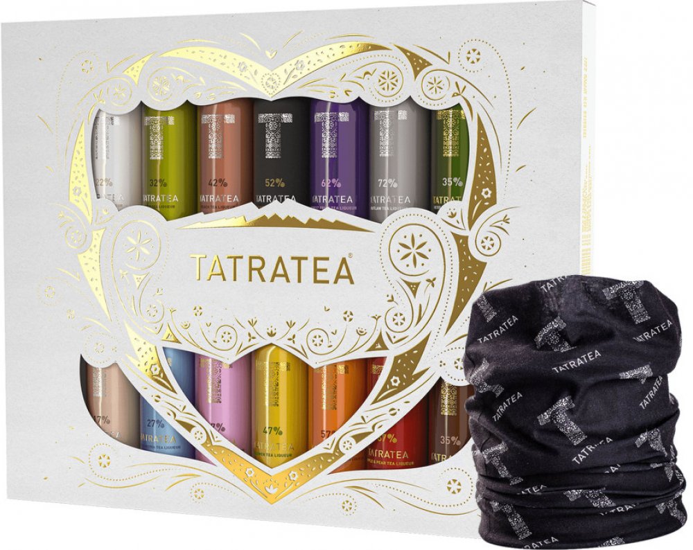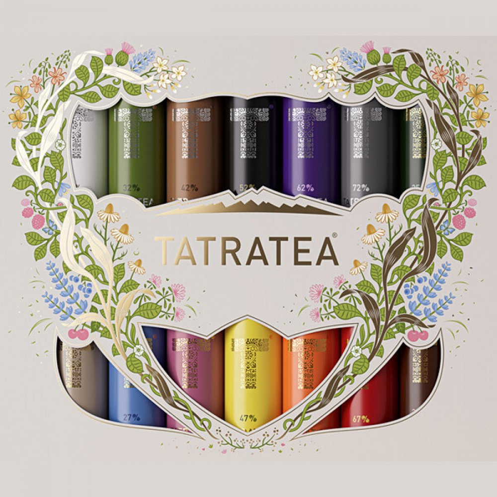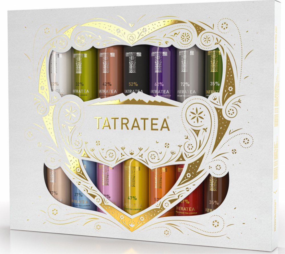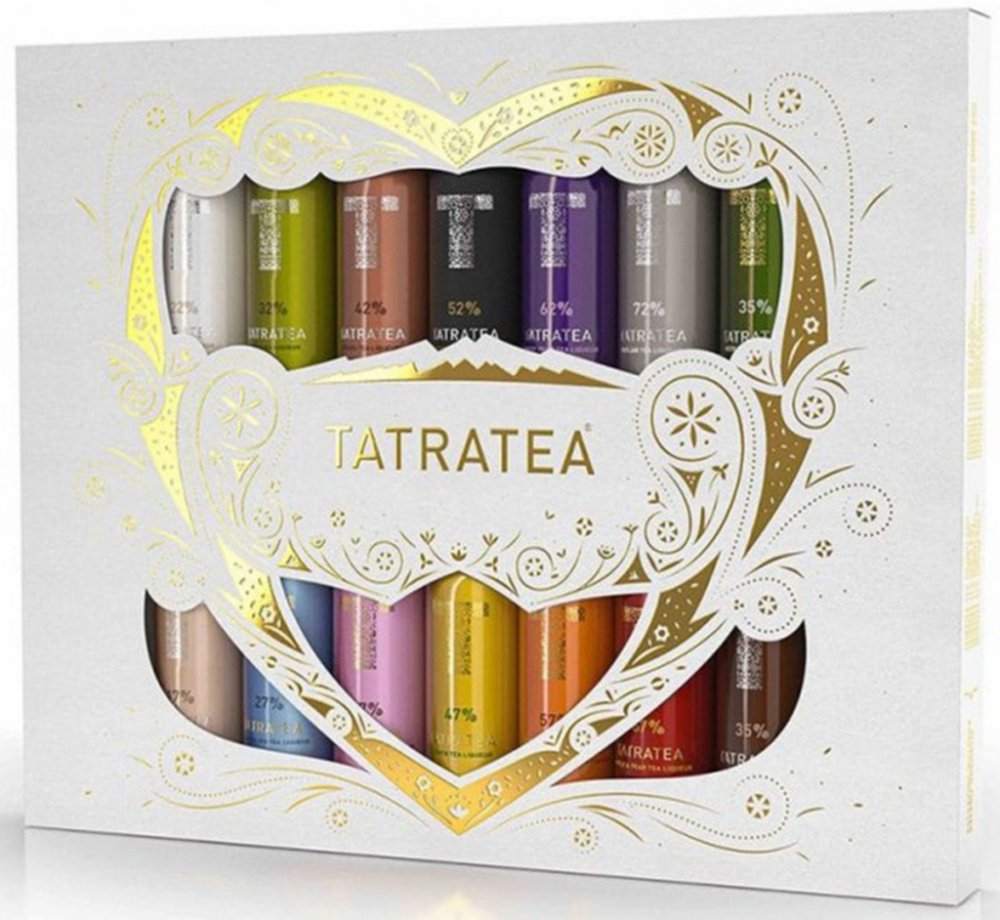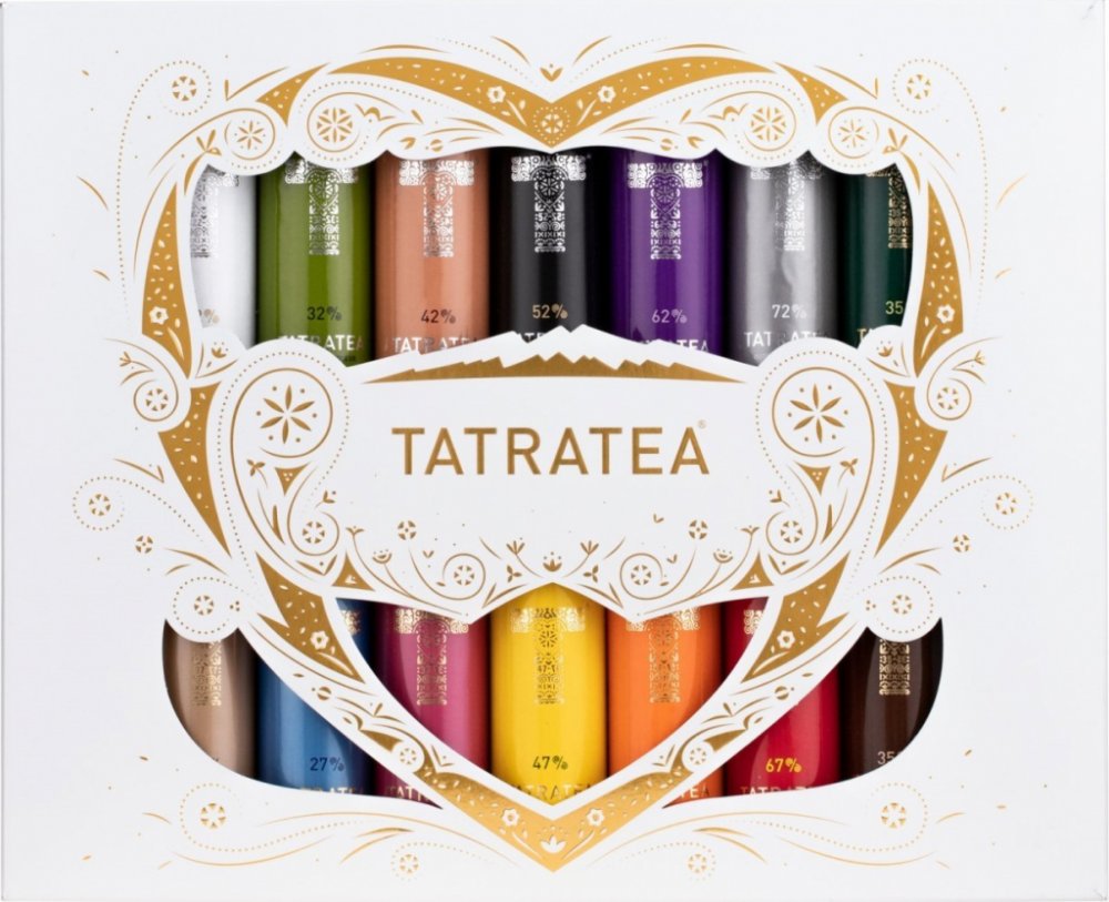Degustační Maxi Set obsahuje 14 lahviček o objemu 0,04 l: Tatratea 17 % - Čerstvá smetana, vařený vanilkový pudink a aroma koláčů se otevírají do jemné mléčně sladké a čajové suché farmářské zmrzlinové chuti Tatratea 22 % - Kokosový, medový, delikátně sladký Tatratea 27 % - Bohatá po kávě, čokoládě a čaji z červených bobulí s příchutí červených hroznů a zlatého sirupu Tatratea 32 % - Vyvážená chuť aromatických černých čajů připomínajících citrusové bonbóny Tatratea 35 % Herbal Tea Digestif - Sladký první dojem, který se plynule rozvíjí v krátký hořký nádech doprovázený jemnými květinovými tóny růží a jasmínu Tatratea 35 % Herbal Tea Bitter - Dlouhotrvající čajová bylinná chuť na jazyku s čerstvým zeleným pepřem Tatratea 37 % - Sladká pralinová s rozinkami a creme brûlée Tatratea 42 % - Dlouhotrvající broskev docelená medovým vínem, osvěžující stopou žlutých květů a bílého čaje Tatratea 47 % - Cítíme stopy lípy, akácie a pomerančového květu, avšak dominantou je květ bezový se sladkou medovou příchutí Tatratea 52 % - Nasládlá po kandizovaného medu, černého čaje, malin a tajných lesních bylin Tatratea 57 % - Sladkokyselá kombinace svěžích extraktů z rakytníku Tatratea 62 % - Sladká po lesním ovoci jako jsou borůvky, ostružiny a lesní jahody s tradiční chutí černého čaje a bylin Tatratea 67 % - Lahodná hruška s pikantním zázvorem, skořicí a vanilkou obohacená o nasládlý karamel Tatratea 72 % - Výrazná po ovocné bobulovité pálence Destilace Legendární bylinný likér ze srdce Slovenska v sobě spojuje prvotřídní černý čaj z Indie, pramenitou horskou vodu, dubové hobliny a přísně tajnou směs tatranských bylinek a koření. Příběh Bylinný likér Tatranský čaj známý také jako Tatratea, už po staletí vlévá sílu do žil nejen horalům na Slovensku. Do velkovýroby jako takové se pustila firma KARLOFF s.r.o. až v roce 2003 pod vedením Jána Semaňáka. Pod značkou Tatratea vyrobil legendární „dvaapadesátku“ Original a obnovil tak tradici tohoto výjimečného moku. Doporučení Obecně se konzumuje buď horký, nebo chlazený s kostkou ledu. Svou „pravou tvář" vám však ukáže, pokud zalijete 5 cl Tatranského čaje 15 cl vařící vody nebo horkým čajem. Taktéž je vděčným základem míchaných long drinků, ať už použijete colu, tonic, sprite nebo i jednoduše jen s řezem citrónu. Dobré pití si zaslouží vhodnou sklenici. Bezolovnatý ručně zpracovaný křišťál od Moseru uspokojí i ty nejnáročnější požadavky. Prohlédněte si naši nabídku sklenic na likéry.