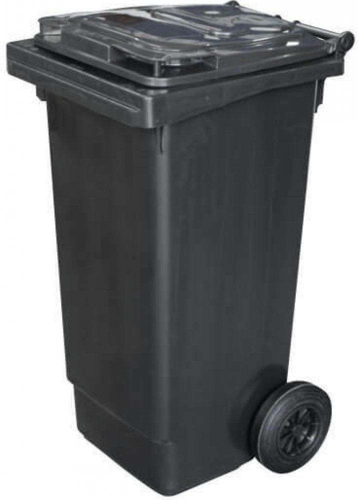 Plastová popelnice o objemu 120 l, nosnost 60 kg, černá barva.