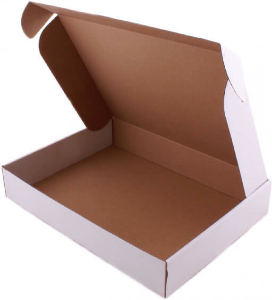 Poštovní bílá krabice s víkem, rozměry 400*300*70 mm, 3-vrstvá lepenka.