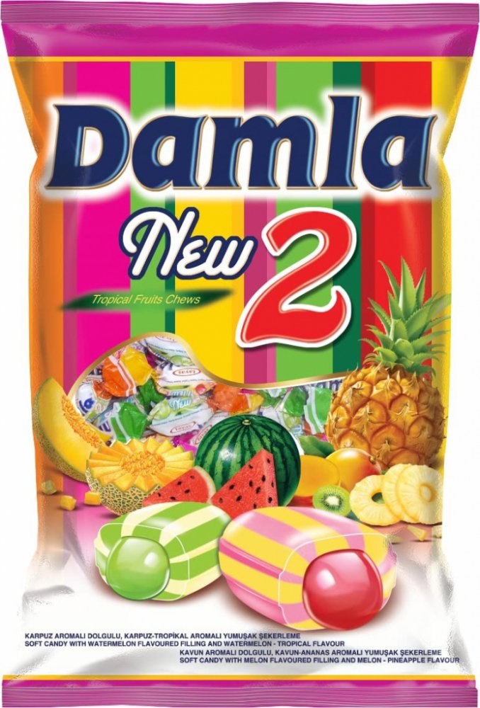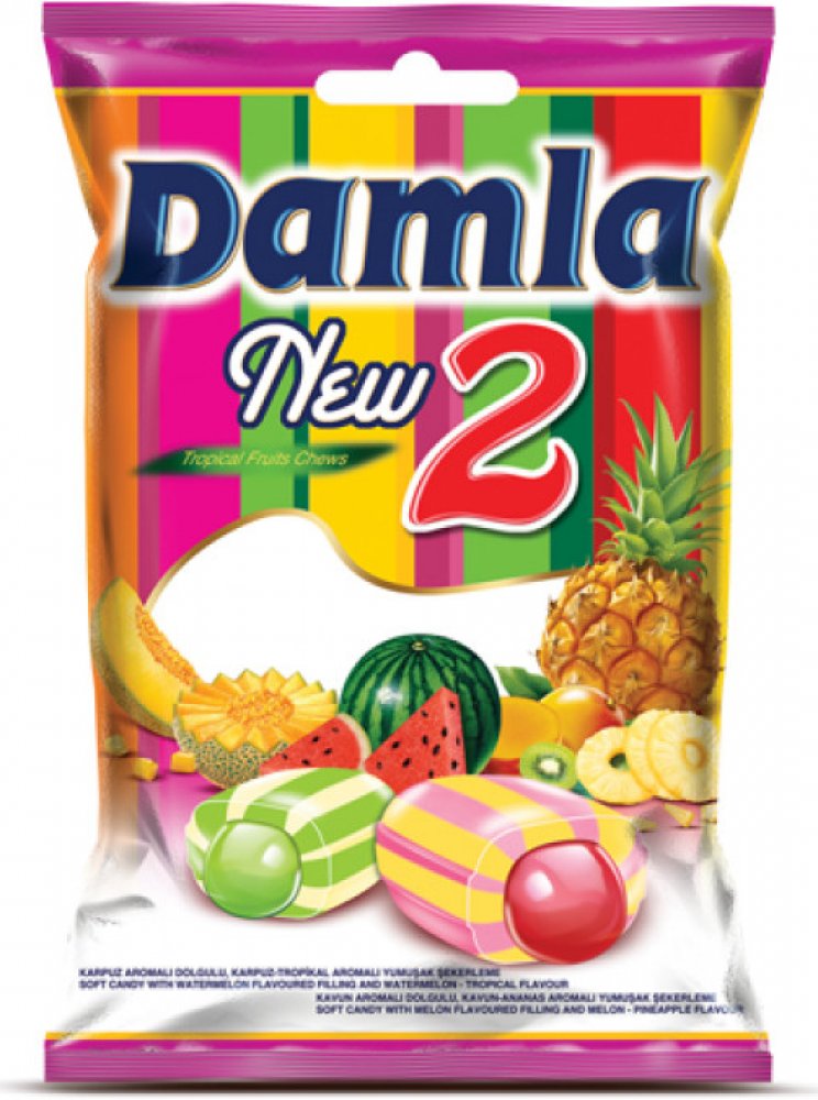 Složení: cukr, glukózový sirup, dextróza, plně hydrogenovaný rostlinný olej (palmový), jedlá hovězí želatina, regulátor kyselosti (kyselina citrónová, aroma (tropiské, meloun), barvivo (antokianyE163, betakarotén), emulgátor (slunečnicový lecitin E322). Náplň 10%: cukr, glukózový sirup, koncentrát jablečné šťávy (15%), regulátor kyselosti (kyselina citrónová), kypřící prášek (pektin E440), aroma (meloun), barvivo (antokiany E163).