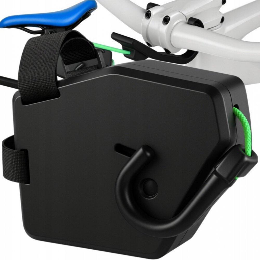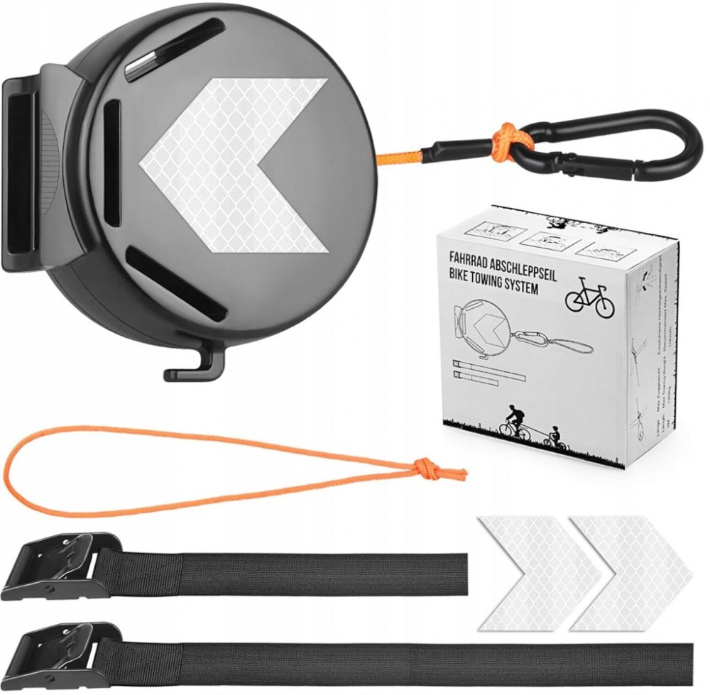 - Snadné použití, stačí připojit lano k sedlu na přední straně kola a hlavě rámu na zadní straně kola.