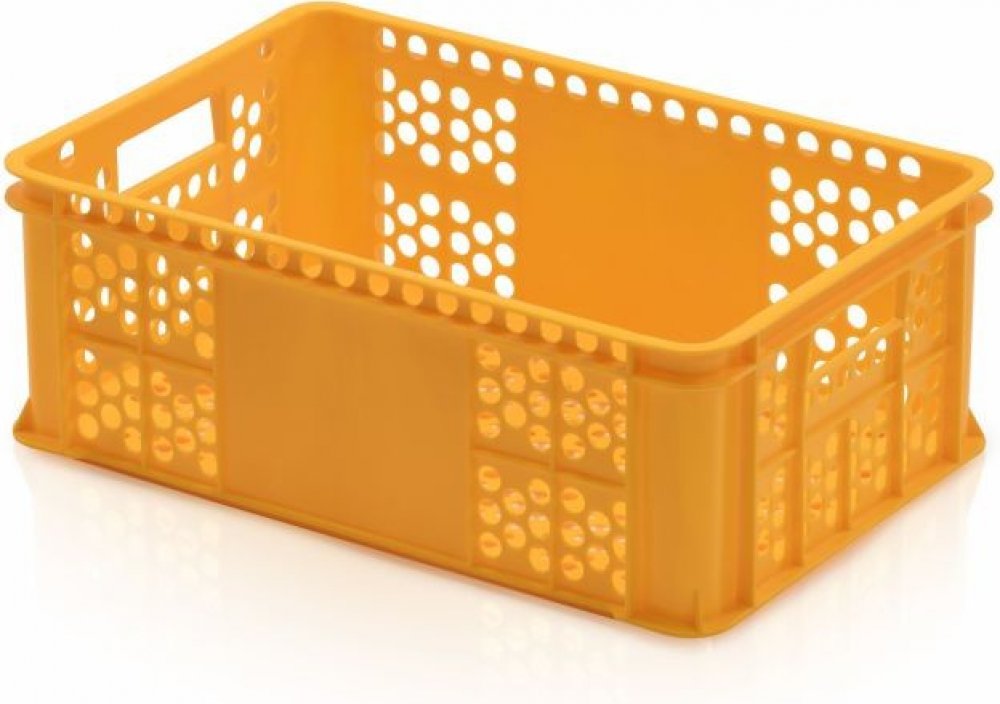 Plastová přepravka na pečivo, otevřený úchyt, 600x400x220 mm. Perforace zajišťuje proudění vzduchu a tím i delší životnost potravin. praktický pomocníkperforované provedeníperforace zajišťuje proudění vzduchu a tím i delší životnost potravindíky otevřenému úchytu snadná manipulacenormované rozměry 600x400 mmdíky rozměrům ideální pro transport i manipulaci na paletáchvyrobeno z vysoce jakostního polyetylenuodolávají i nízkým teplotámvhodné do chladících zařízenípotravinářský atestbarva žlutá