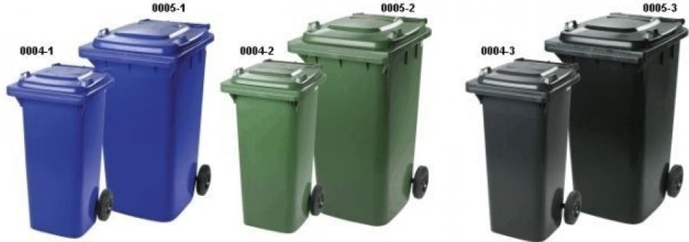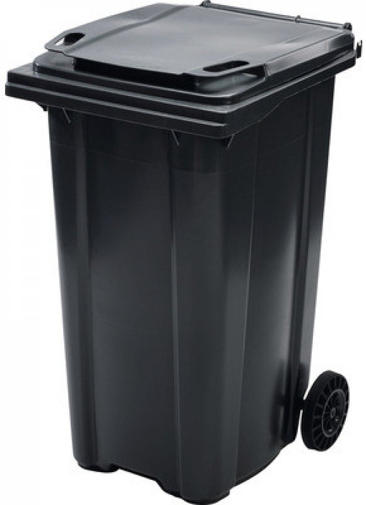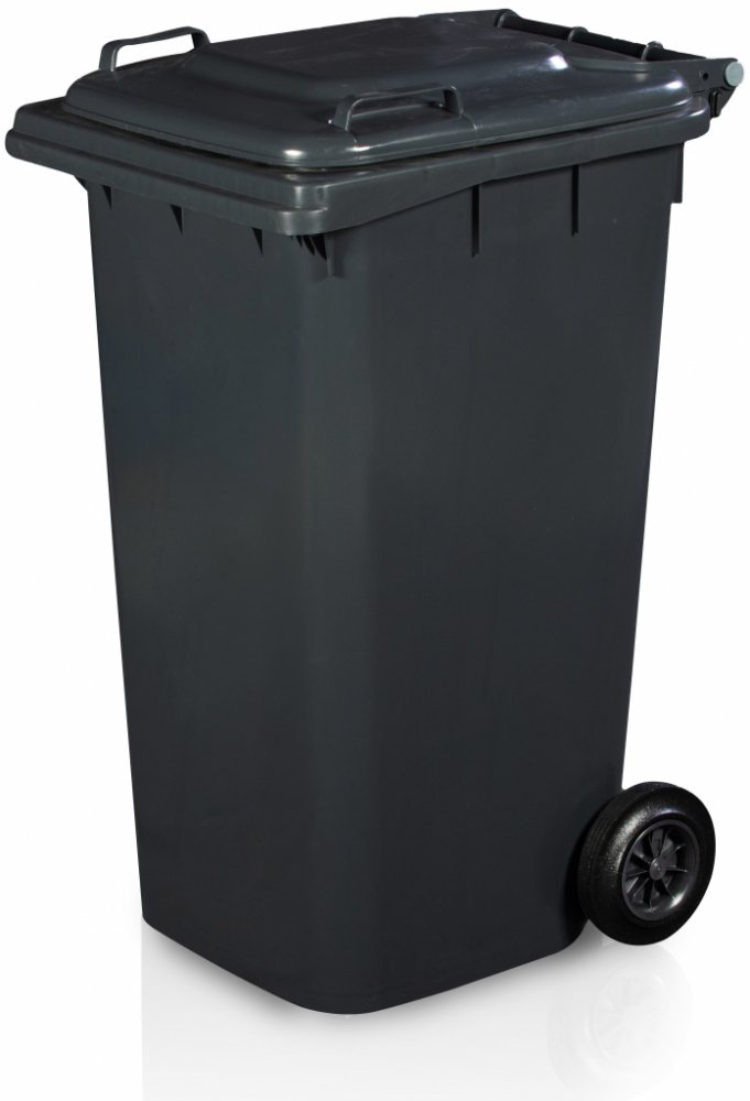 Mobilní plastové nádoby - popelnice, kolečka pro snadnou manipulaci, snadná údržba a čištění. Vhodné pro venkovní i vnitřní použití - materiál HDPE (vysokohustotní polyetylen), barva kontejneru tmavě šedá. Fotografie popelnic jsou pouze ilustrační.