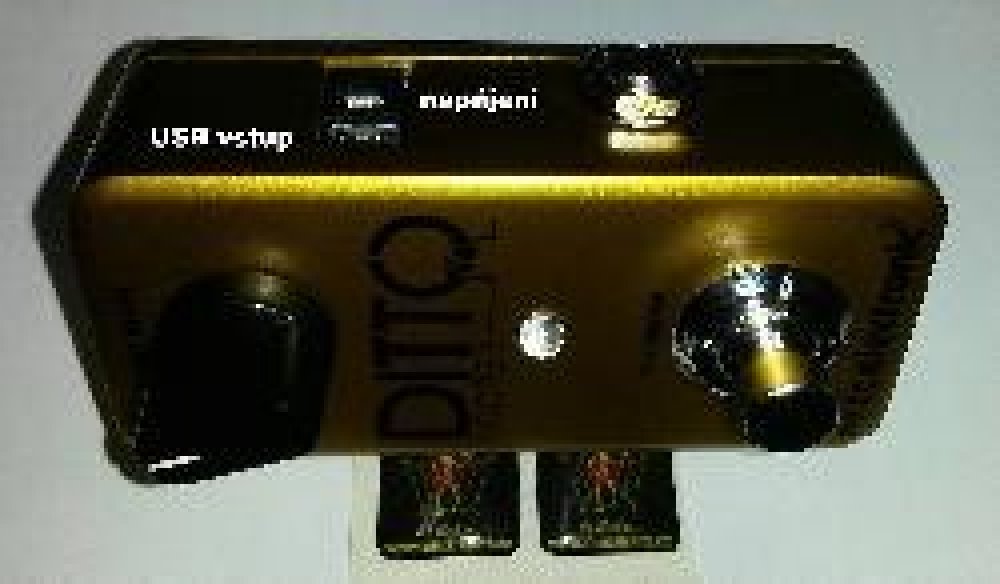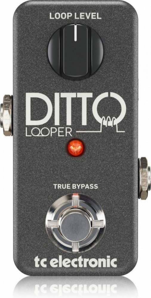 Kytarový looper Ditto Looper je kytarový efektový pedál značky TC Electronic, jehož funkce je patrná již z názvu – slouží k nahrání a opakování smyček toho, co hrajete. Jeho zásadní výhodou proti téměř všem ostatním looperům je jeho jednoduchost. Netřeba se trápit s dlouhým nastavováním, řadou tlačítek a kroutítek. Stačí zapojit kabely, stisknout nožní spínač a hrát... Elektronika tohoto pedálu, která je zapojena způsobem true-bypass, aby nikterak neovlivňovala signál, pokud není aktivní, je ukrytá v malém kovovém šasi. Na horní straně se nachází pouze jeden potenciometr a masivní nožní spínač, z boků jsou umístěny vstup a výstup a konektor pro připojení adaptéru. Nastavení probíhá pouze pomocí potenciometru, který určuje hlasitost nahrané smyčky. Všechny další příkazy, to jest spuštění nahrání, ukončení nahrání, krok zpět či dopředu a smazání smyčky, se provádí pomocí různých příkazů přes nožní spínač – krátkým stisknutím, dlouhým stisknutím či dvoujšlápnutím. Paměť Ditto dokáže zaznamenat až 5 minut smyček. Výhodou je, že ty zůstávají v paměti i po odpojení napájení a vypnutí. Samozřejmostí je možnost overdubu, tedy vrstvení smyček, a to kolikrát budete chtít. Sečteno a podtrženo, Ditto Looper je pedál s velmi intuitivním ovládáním, dobrou výbavou a skvělým zvukem. Pro práci se smyčkami je to ideální volbou, ať již začínáte nebo máte léta zkušeností.