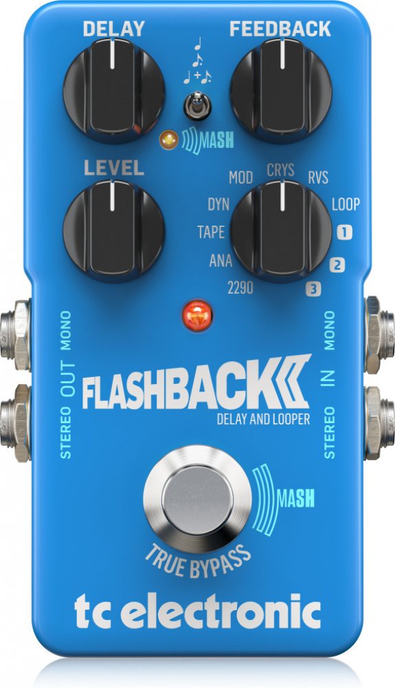 Kytarový efektový pedál kombinující delay a looper, který nabízí výjimečný zvukový zážitek díky infuzi na dotyk citlivé MASH technologie s proslulými delay algoritmy od společnosti TC Electronic. MASH technologie reaguje na množství tlaku, které je vyvíjeno na spínač - čím silněji ho stisknete, tím je efekt intenzivnější. Kontrolovat ji můžete pomocí bezplatného softwaru TonePrint Editor, který umožňuje její přiřazení k jakémukoliv parametru a ovládání až tří parametrů najednou. Při každém delay presetu ovládá MASH technologie jiný parametr. Pedál dále nabízí zcela přepracované algoritmy Tape a Analog, věrně připomínající zvuk old-schoolových echo pedálů. Kromě toho je vybaven i Crystal delayem, který je vytvořen pomocí polyfonického oktávového algoritmu z dílny TC, původně využitého v pedálu Sub 'N' Up Octaver. Celkově pedál nabízí 8 vysoce kvalitních delayů a 3 TonePrint sloty, plus 40-sekundový looper. Jeho zvuk může být upraven pomocí ovladačů Delay Time, Level a Feedback. K dispozici jsou i stereo vstupy/výstupy a možnost výběru true nebo buffered bypassu.