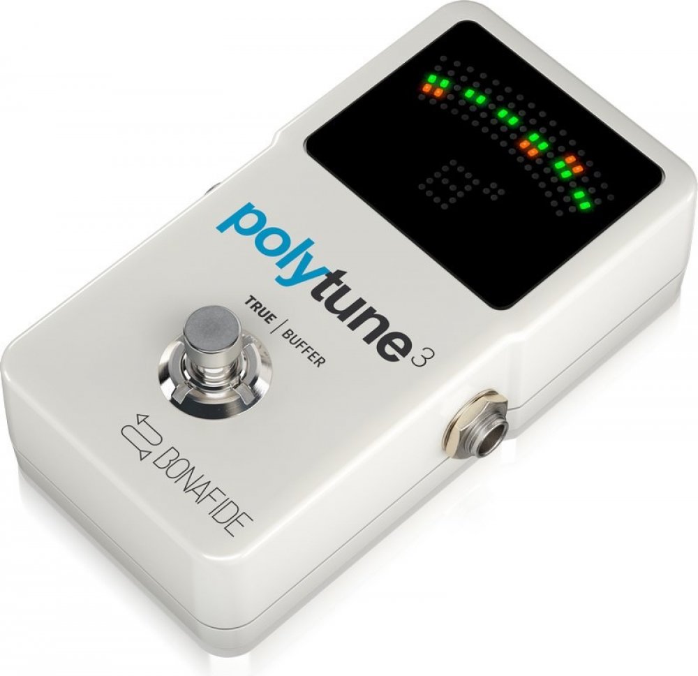 Kompaktní pedálová ladička 3. generace série PolyTune. Ladička nabízí volbu polyfonického ladění kytary, ale automaticky se přizpůsobí klasickému způsobu zobrazování při samostatném ladění strun. Pedál je zasazen v odolné a pevné kovové konstrukci. Novinkou u 3. generaci je mód "Always On", který umožňuje zobrazování ladění i bez vypnutí zvuku. Ladička je navíc vybavena i kvalitním vestavěným Buffer značky TC Electronic, Bona Fide. Buffer je samozřejmě možné deaktivovat, díky čemuž pedál nabízí okamžitě klasické true bypass spínání. Ladička ladí s přesností ±0.02 cent.