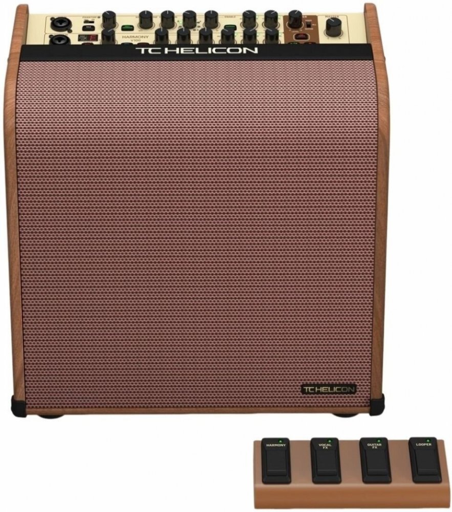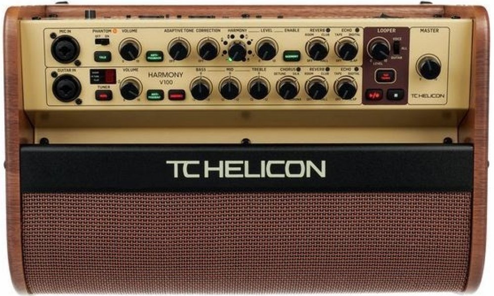 Akustický zesilovač Harmony V100 je plný funkcí a inovací, které vám mohou pomoci skládat složité a vyvíjející se zvuky doma nebo na pódiu. Maximalizujte svůj zvukový potenciál, abyste upoutaly pozornost, a zadržte jej pomocí množství fascinujících vokálních a kytarových efektů a smyček v lehce přenosném procesoru a zesilovači. Pedály nechte doma. Součástí balení je sada "sweet guitar" efektů které by si běžně vyžadovaly velký pedalboard. K dispozici je rychlý a přesný tuner, BodyRez na zlepšení pocitu a tónu snímače pod sedlem, 3-pásmový EQ a samostatné Chorus, Reverb a Echo s vlastními styly a ovládáním mixu. Vše, co přidáte, je kytara a váš groove. Každý ví, že hlavním odkazem pro publikum jsou vokály a studiové zpracování vokálu TC Helicon umožňuje, aby váš hlas zazářil. Díky Adaptive Tone pro okamžitý "producer polish", transparentní korekci výšky tónu, dvěma dalším virtuálním hlasům Harmony a svěží expanzívnosti Reverb and Echo bude váš hlas vynikat jako nikdy předtím.