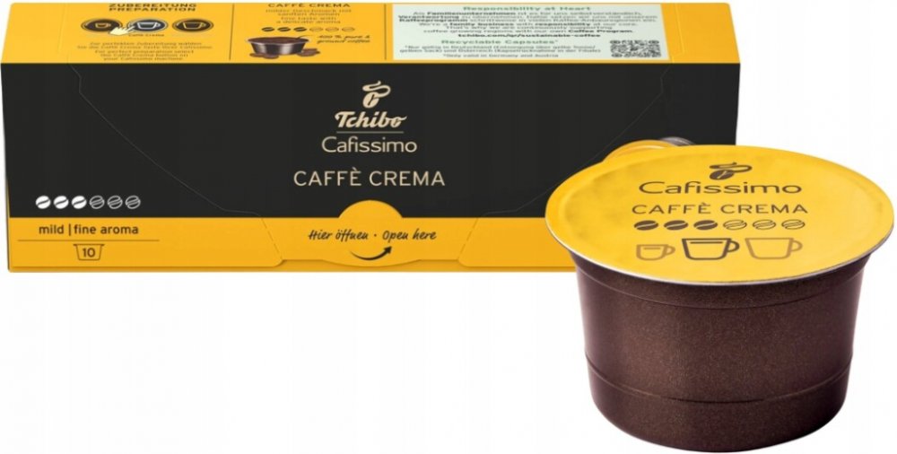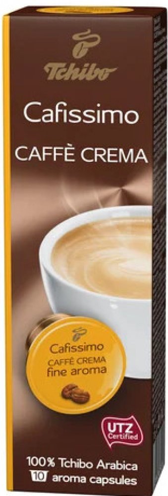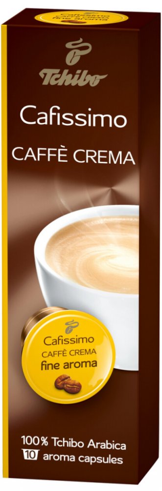 Tchibo Cafissimo Caffe Crema Fine Aroma je směs nejkvalitnějších zrn Arabica. Každý typ chuťových kapslí se skládá z nejlepších vybraných zrn Arabica, pomalu dozrávajících ve slunných a teplých oblastech světa. Díky perfektně zvolenému složení zrn Arabica má jemnou a sametovou chuť s hustou, krémovou pěnou.