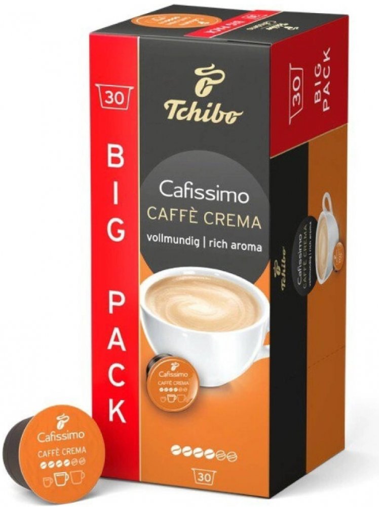 Kávové kapsle Tchibo Cafissimo CC vollmundig30 kapslí Připraví kávu s jemnou cremouKávové kapsle Tchibo Cafissimo CC vollmundig v sobě ukrývají 100% Arabicu, která zajistí rovnováhu mezi aromatem a plnou chutí. Káva z udržitelně pěstovaných kávových zrn vyniká jemnou cremou a kyselostí a plným tělem. Dosahuje intenzity 4 z 6. Kávové kapsle Tchibo Cafissimo CC vollmundig jsou kompatibilní s kávovar...