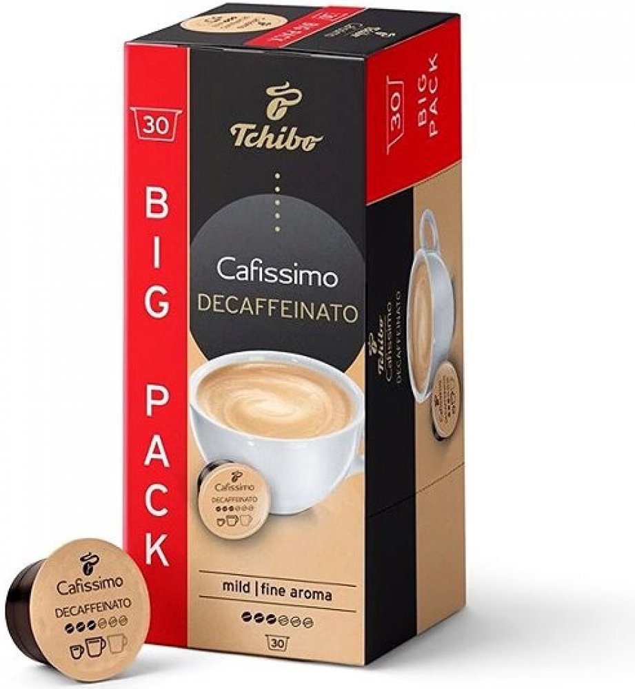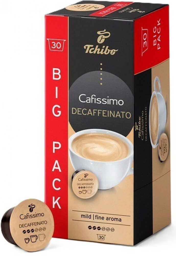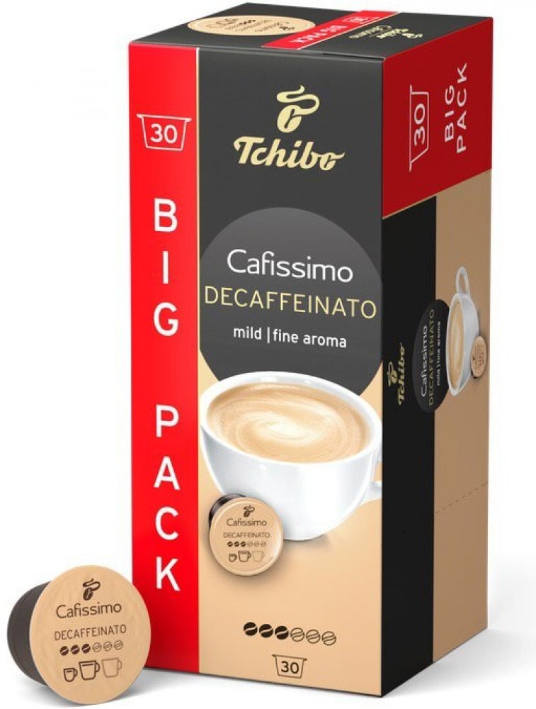 Kávové kapsle Tchibo Cafissimo Decaffeinato30 kapslí V chuti kávy ucítíte čokoláduKávové kapsle Tchibo Cafissimo Decaffeinato v sobě ukrývají 100% Arabicu, která zajistí jemný a aromatický kávový zážitek. Káva je bez kofeinu, můžete si ji tak dopřát kdykoli v průběhu dne. Vyniká hlubokou vůní a chutí s tóny čokolády. Dosahuje střední intenzity. Kávové kapsle Tchibo Cafissimo Decaffeinato jsou komp...