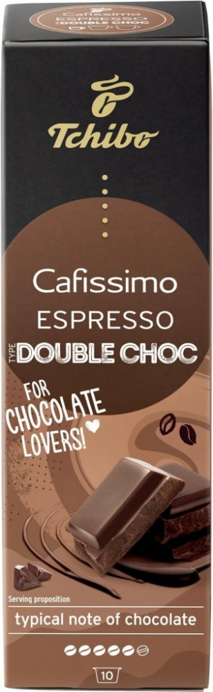 Tchibo Cafissimo Espresso s čokoládovou příchutí10 kapslí, 70 gVýrazné espresso doprovázené intenzivním čokoládovým aroma. Pro každou z aroma kapslí se používají nejlepší kávová zrna Tchibo, která pomalu dozrávají ve slunných regionech. Pro intenzivnější chuťový zážitek si své espresso oslaďte cukrem. Přírodní aromata, bez přidaného cukru, bez umělých sladidel, bez sušeného mléka. Espresso s čokol...