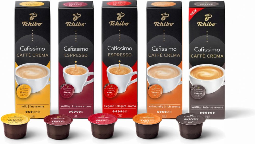 Tchibo Cafissimo Cafe Crema Rich Aroma – 100% arabika se středně intenzivní chutí a vůní. Nejpopulárnější položka z řady Tchibo od společnosti Cafissimo. Vyznačuje se krásnou a zlatavou cremou, hlubokou a bohatou chutí. Je intenzivnější než Caffe Crema Fine a odlišuje se silnějšími chuťovými akcenty. Je to skvělá volba pro lidi, kteří mají rádi výrazné chutě.Dedikovaný objem vaření je Caffe Crema – 125 ml.
