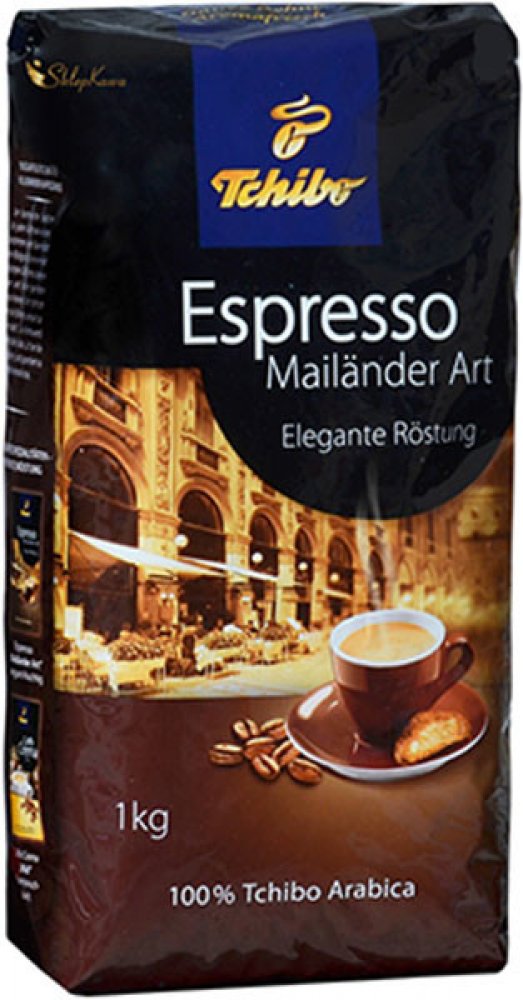 Tchibo Mailander Art zrnková káva 1 kg Jedinečná káva díky svému aroma, které svou intenzivní a plnou chutí uspokojí i nejnáročnější milovníky kávy. Jedinečná jihoitalská směs Arabiky a Robusty dodává této kávě typickou sicilskou chuť espressa. Vhodná pro přípravu kávy v automatických kávovarech. Jedinečná jihoitalská směs Arabiky a Robusty dodává této kávě typickou sicilskou chuť espressa