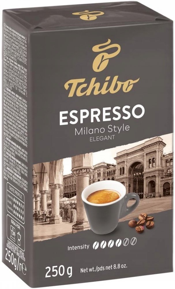 Káva Tchibo Espresso Milano Style (Mailander) je směs italského typu z nejlepších zrn Arabica a Robusta, rafinovaná pomalým procesem pražení. Lehce ovocný charakter s nádechem čokolády, podobný chuti, kterou najdete v severní Itálii a sametově dlouhotrvající crema.