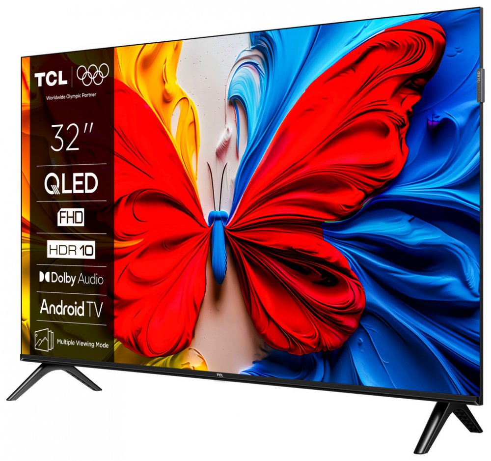 QLED televize • úhlopříčka 80 cm (32") • Full HD rozlišení (1920×1080 px) • HDR/HDR10/HLG • tunery DVB-C/S2/T2 (H.265) • QLED displej • LED podsvícení • Bluetooth • Wi-Fi • LAN (Ethernet) • 2× HDMI 1.4 • 1× USB 2.0 • Dolby Audio • Multisound • VESA 10×10 cm • ovládání hlasem • Google Cast • Android TV • energetická třída F • operační systém Google TV
