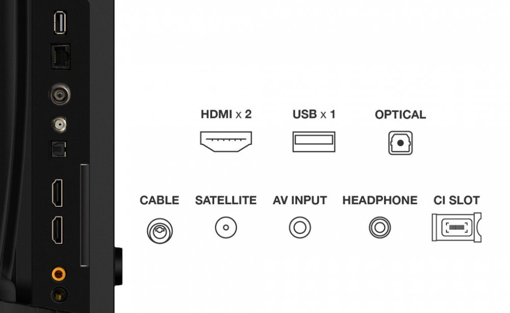 QLED televize • uhlopříčka 32" (80 cm) • HD rozlišení 1366×768 px • jas 300 nitů • VA panel • Direct LED • HDR10 • HLG • DVB-T2/C/S2 tuner • kodek HEVC (H.265) • Wi-Fi • LAN • 2× HDMI • 1× USB • ARC • CI slot • HbbTV • Bluetooth • DLNA • Google Cast • Dolby Audio • Dolby Digital Plus • zvuk 16 W • Google TV • VESA 100×100 mm • energetická třída F