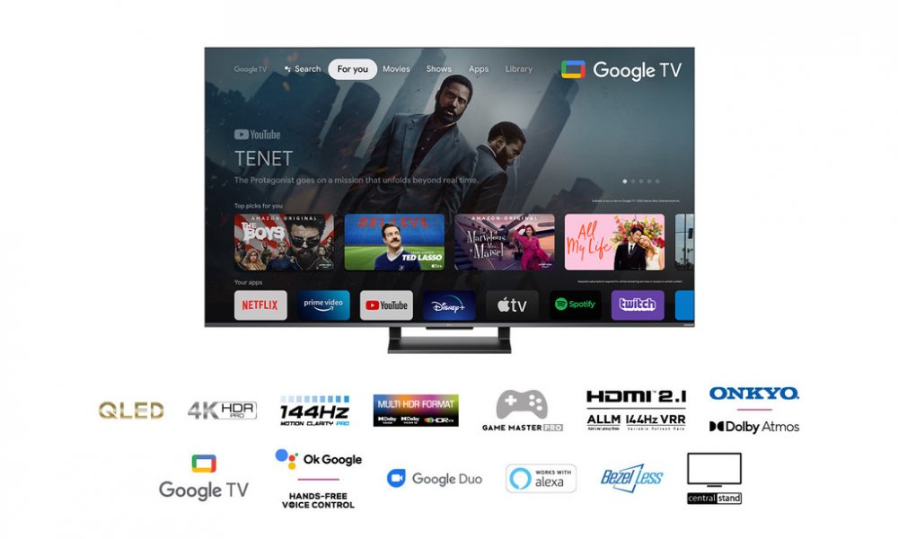 TCL 139 cm QLED 55 palců Google TV 2022 5.9 ms 3840 x 2160 16 : 9 144 Hz 100 / 120 Hz 10 bit 4 2 85 W 126 kWh G 145 kWh 85 kWh 12.1 kg 300 x 300