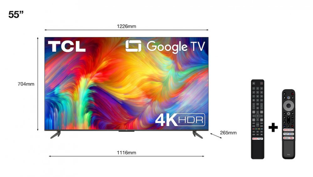 LED 4K Ultra HD Google TV 55P735 Obrazovka Obrazovka 55" (139 cm) Smart LED Rozlišení 3840×2160 px Jemnost 2700 PPI Direct LED Zobrazení Micro Dimming Smart HDR UHD AI Super Resolution Upscaling WCG – Wide Color Gamut – schopnost reprodukce širokého spektra barev Dolby Vision / HDR10 / HLG Kodek HEVC (H.265) – nový digitální standard Konektivita DVB-T2/C/S2 tuner Wi-Fi 5 (2,4 GHz + 5 GHz) LAN 3× HDMI 2.1 2× USB 3.0 (1× USB 3.0 + 1× USB 2.0) eARC ALLM CI slot (CI+ 1.4) Bluetooth DLNA Funkce Skylink FastScan HbbTV 2.0 Zrcadlení obrazu Ovládání a vyhledávání hlasem (i v češtině) MagiConnect & Chromecast Párování s mobilním zařízením Android a iOS Aplikace Google Duo pro videohovory a hlasové hovory pomocí USB kamery s podporou UVC Google Stadia certifikace Zvuk Dolby Atmos DTS-HD Hudební výkon 40 W Ostatní Operační systém Google TV Menu TV i v jazycích početných menšin – ukrajinština, vietnamština Podpora VESA 200×200 mm 2 ovladače v