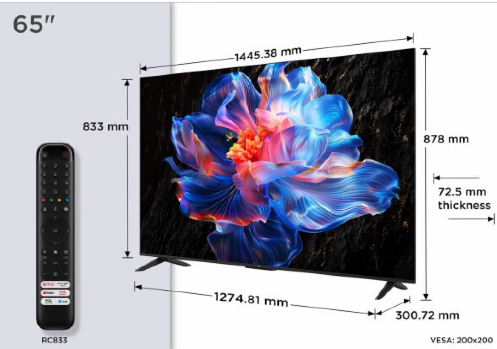 Technologie TCL (AV/TV): HomeKit supportDynamic Colour Enhancement4K HDR Display120Hz Game AcceleratorHVA ScreenApple AirPlayT-castGoogle CastMotion Clarity