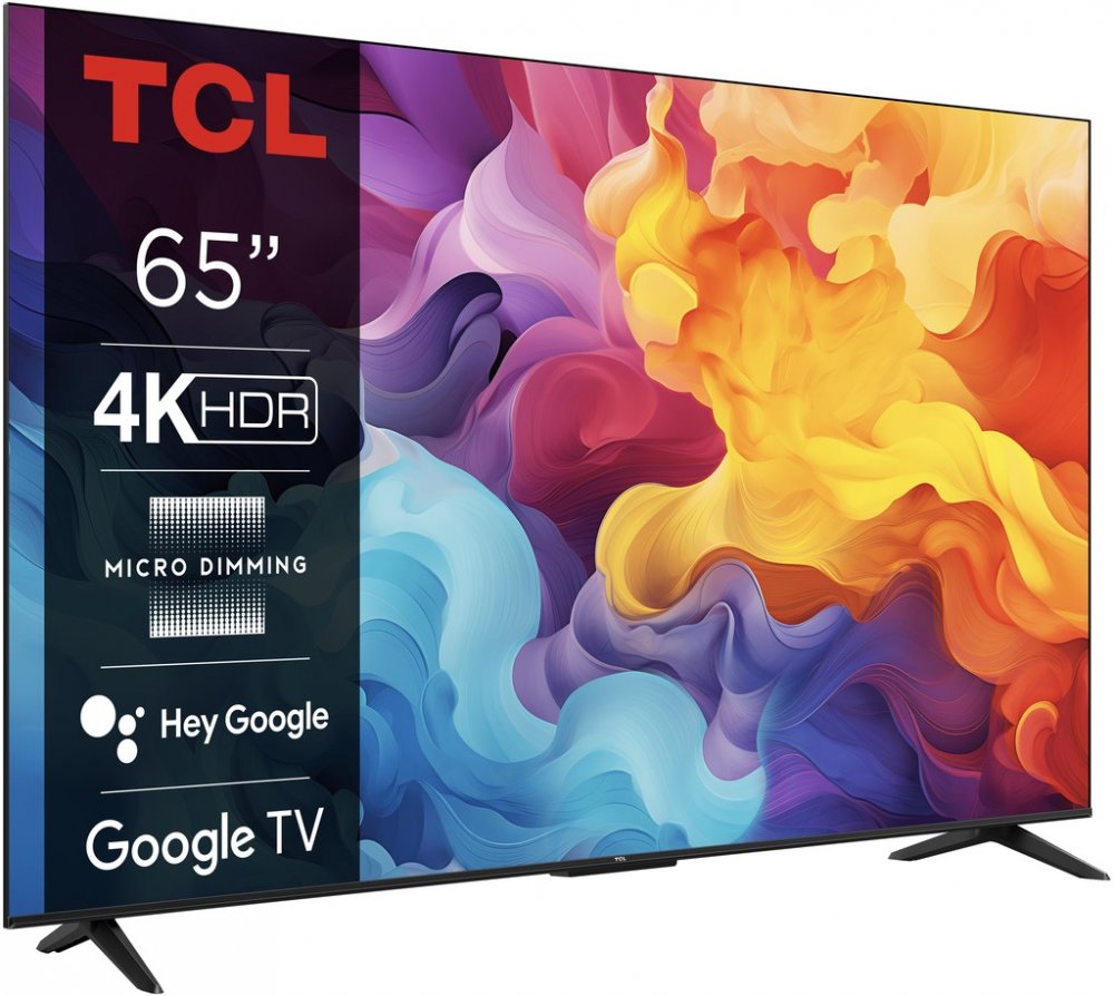 TCL 164 cm LED 65 palců Google TV 2024 Černá Dálkový ovladač, baterie, manuál Nejlepší v ztlumených/tmavých místnostech 3840 x 2160 16 : 9 60 2.0-3.5m optimální Základní HDR Nejnovější 2024/2025 platforma 4K HDR streaming připraveno 3 1 3 porty 80.0 W E 115 kWh 80 kWh 1831003 Snadná montáž (standardní VESA) 13.1 kg 200 x 200 Vyžaduje 150cm+ nábytek 83,3 × 144,5 × 7,2 cm Dobrý vestavěný zvuk