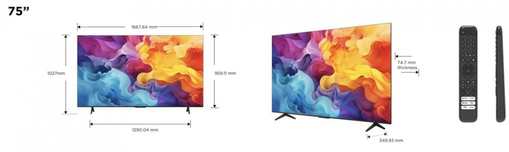 TCL 189 cm LED 75 palců Google TV 2024 3840 x 2160 16 : 9 50 / 60 Hz 3 19 kg E 165 kWh 107 kWh