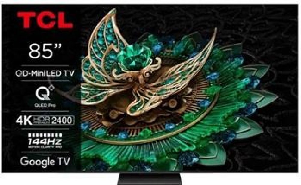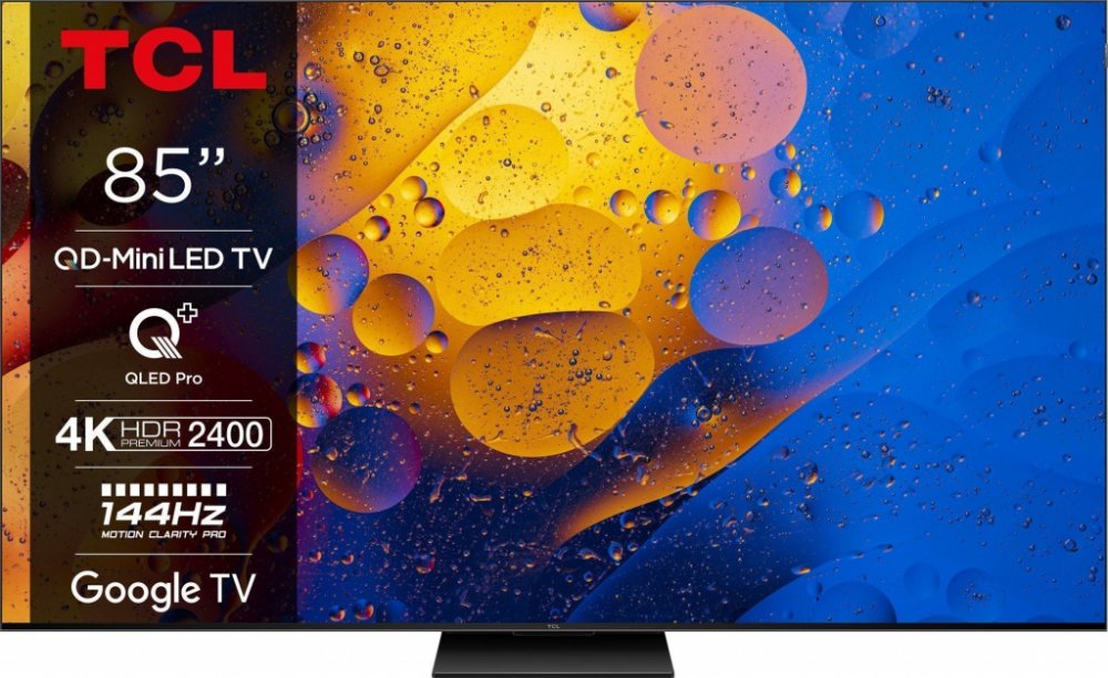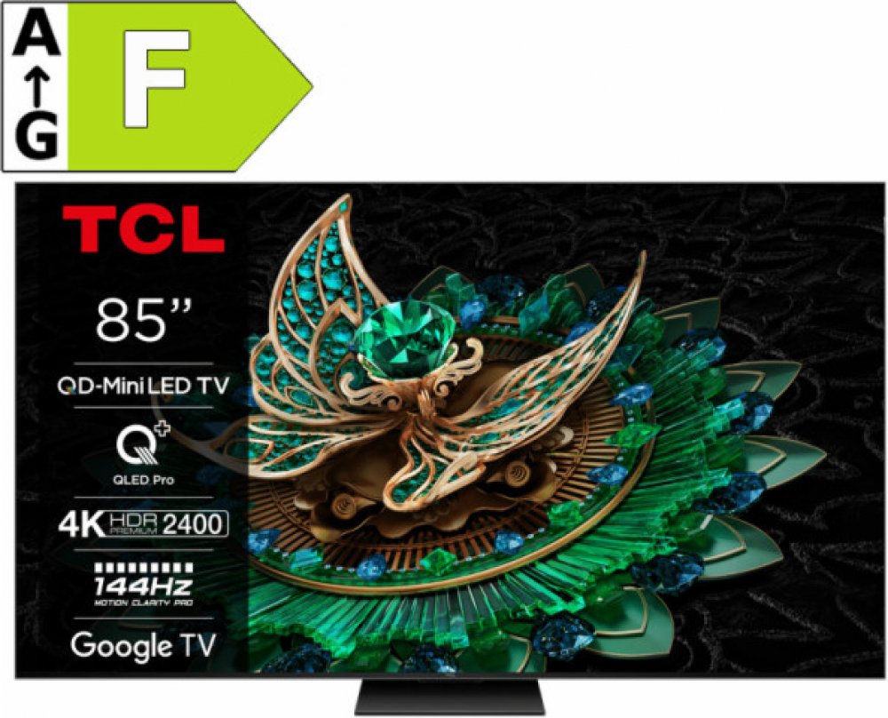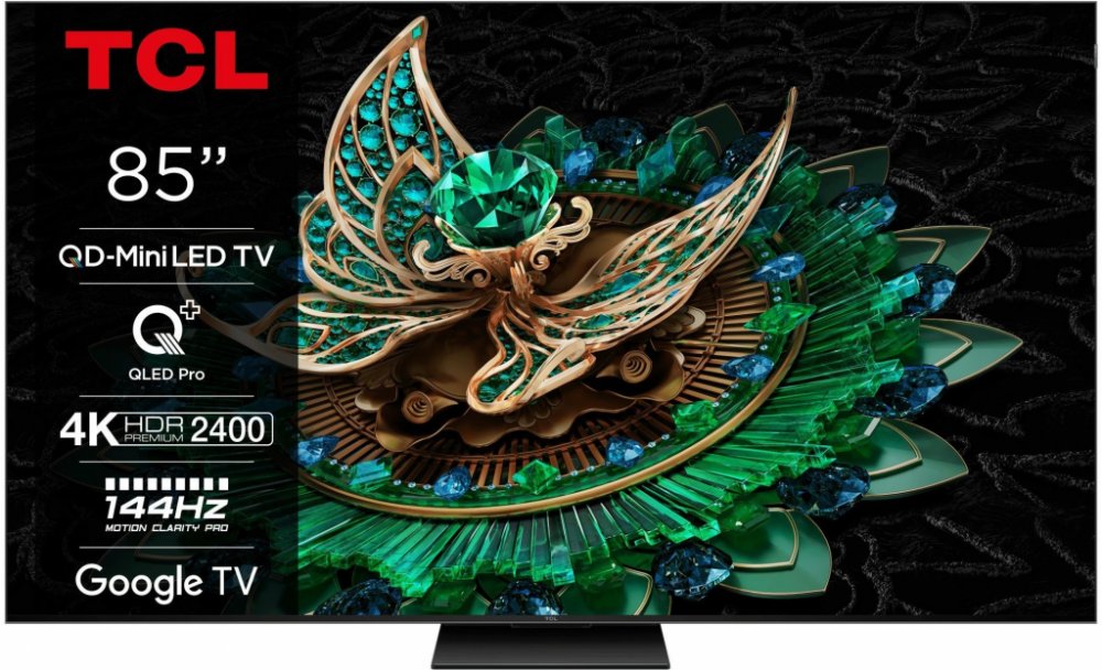 TCL 214 cm Mini LED 85 palců Google TV 2024 Dobré pro smíšené osvětlení 5.7 ms 3840 x 2160 144 Hz 144 2.5-4.5m optimální Silný HDR výkon Starší platforma (může zpomalovat) 4K HDR streaming připraveno 4 1 4 porty 30 W F 390 kWh 155 kWh Složitější (těžká/speciální držák) 39.8 kg 600 x 400 Vyžaduje 195cm+ nábytek 108,9 x 189 x 7,3 cm