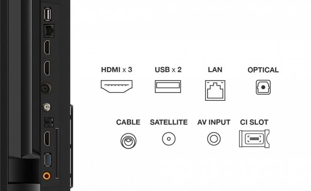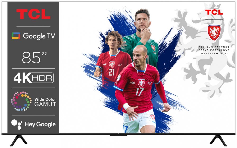 LED televize • uhlopříčka 215 cm (85") • 4K Ultra HD rozlišení (3840 × 2160 px) • HDR 10, HLG • tuner DVB-T2 (H.265/HEVC), DVB-S2, DVB-C • HbbTV • webový prohlížeč • Wi-Fi • Bluetooth • Miracast • 3× HDMI • 2× USB • CI+ slot • LAN • energetická třída F • operační systém Google TV