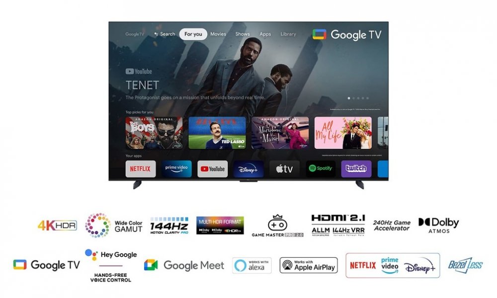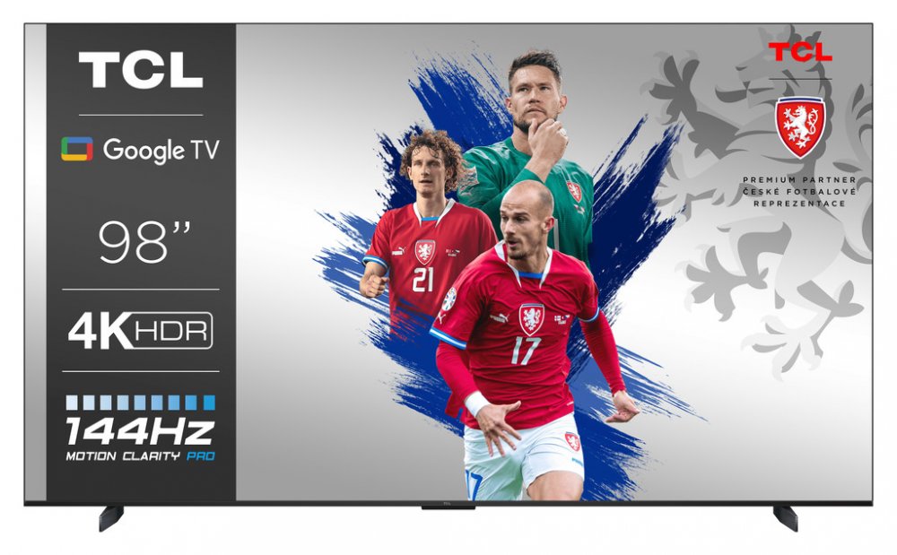 LED SMART televize, 98" (248cm), OS Google TV, 144Hz, rozlišení 4K UHD (3840×2160 px), DVB-T2/C/S2, H.265/HEVC, Dolby Vision IQ, HDR10+, HLG, HDMI, USB, Dolby Atmos