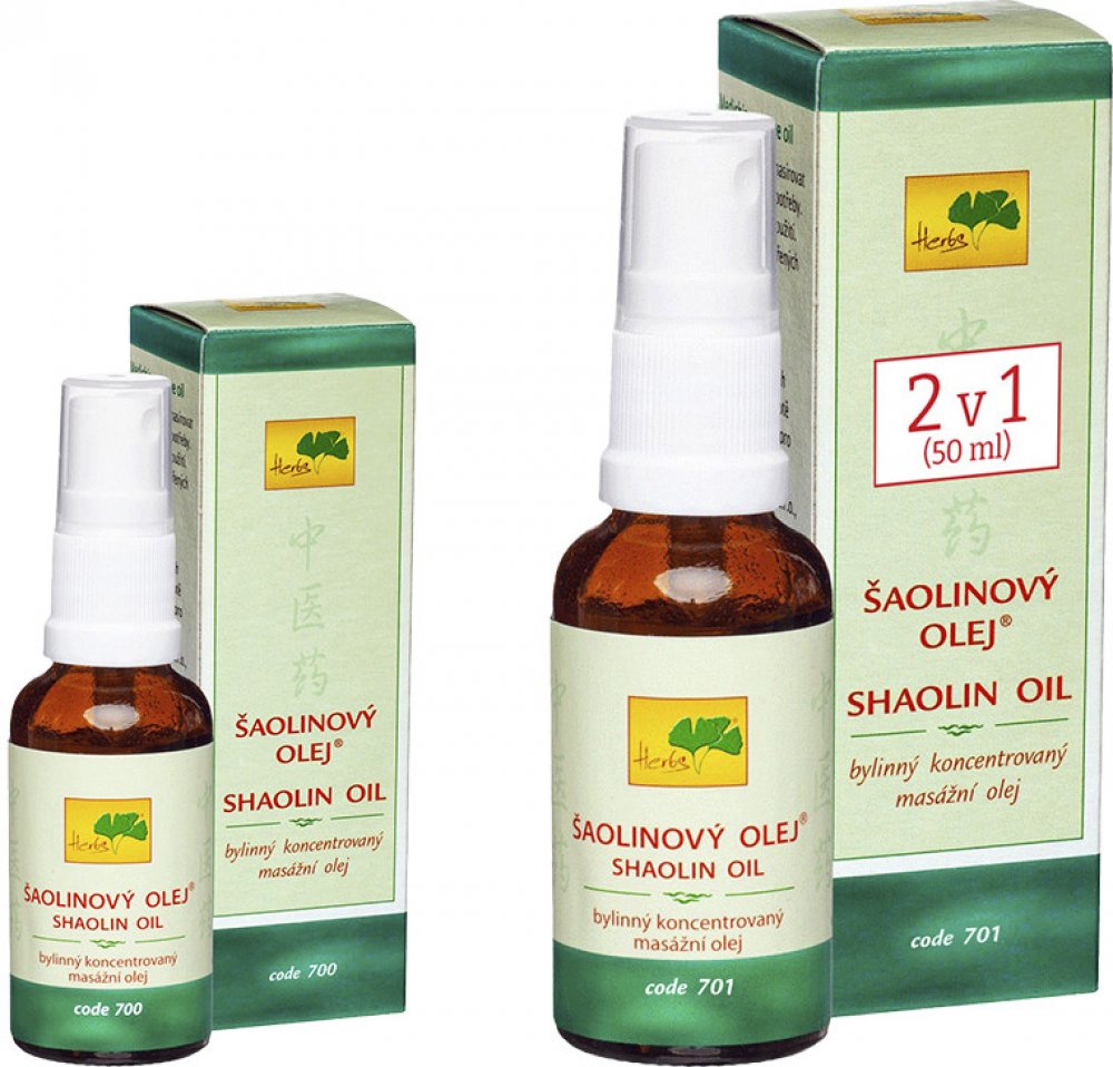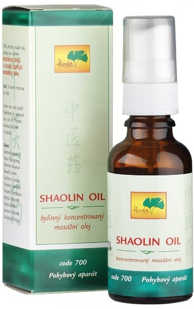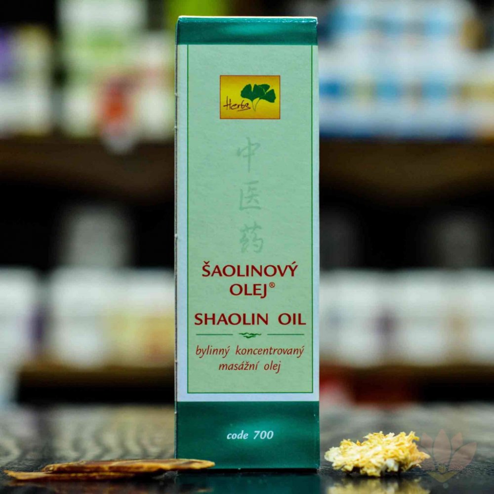 Rozbor bylin ve směsi dle tradiční čínské medicíny:Císařskou bylinou je San qi, který rozprouďuje stagnaci krve a zastavuje krvácení, zmenšuje otoky a utišuje bolest Ministerskými bylinami pak jsou Mo yao, který zlepšuje cirkulaci krve a podporuje hojení, Ru xiang rozhýbává krev a energii Qi, uvolňuje šlachy, utišuje bolest, odblokovává dráhy, zmenšuje otoky a zarudnutí tkáně, Hong hua rozhýbává krev, rozpouští stagnující krev a utišuje bolest, Gu sui bu podporuje hojení vazů, šlach a kostí a posiluje ledviny, Xue jie rozpouští stagnující krev, zastavuje krvácení a utišuje bolest. Asistentskými bylinami jsou Du huo, který vylučuje vítr a vlhko z oblasti zad, utišuje bolest a uvolňuje chladný vítr při napadení zevním větrem a chladem, Dang gui vyživuje a rozhýbává krev, zmenšuje otoky a zarudnutí a utišuje bolest. Poslíčkami pak jsou Hei zhi ma, který posiluje ledviny a rozprouďuje krev, Su xin hua vylučuje horký vítr z povrchu těla a uvolňuje povrchovou vrstvu.Shaoilin oil je 100% přírodní bylinný masážní olej, vyrobený z 10 vysoce koncentrovaných čínských bylin, a je vhodný jak pro masáž, tak k regeneraci pohybového aparátu.