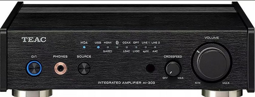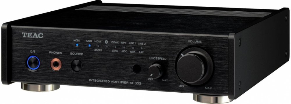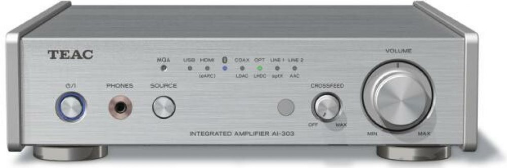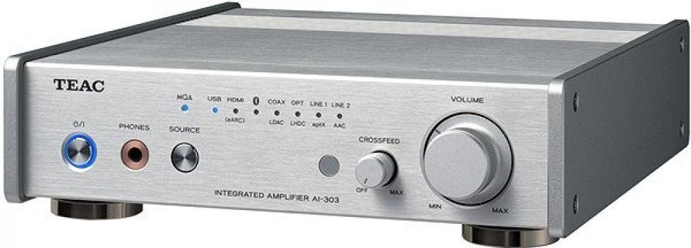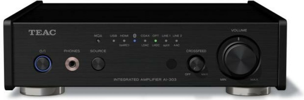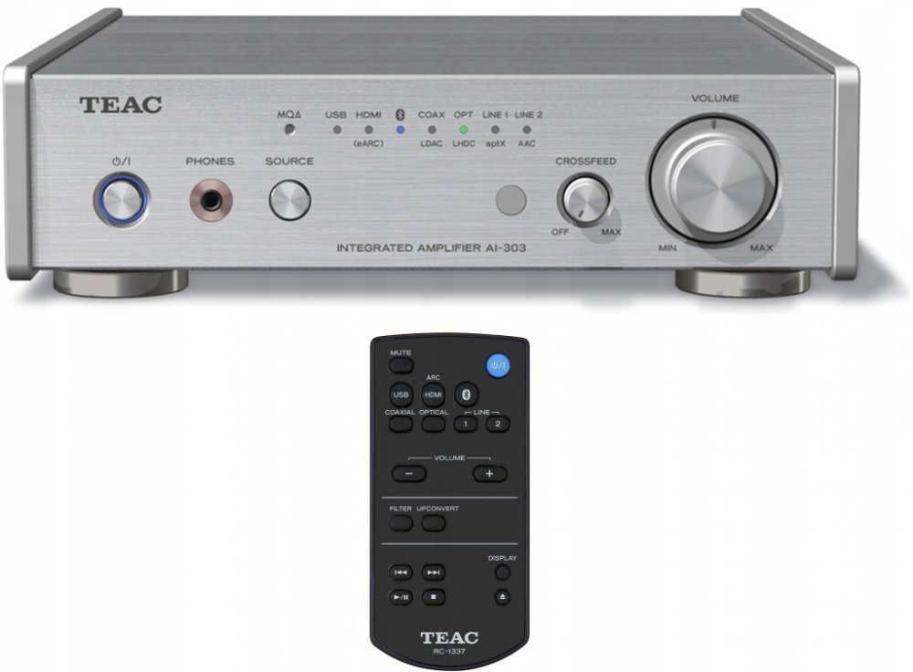 Audio zesilovač TEAC AI-303 s půdorysem pouze 215 mm obsahuje kompaktní a vysoce výkonný modul zesilovače, Bluetooth® přijímač podporující DAC®, Qualcomm® aptX™ HD a USB audio vstup pro přehrávání zdrojů zvuku ve vysokém rozlišení, jako jsou DSD256 a PCM