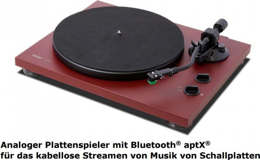 Gramofon TEAC TN-400BT-SE Elegantní výkonný gramofon Teac TN-400BT-SE ve dřevěném designu je ideálním zařízením pro všechny hudební fajnšmekry, kteří si chtějí vychutnat oblíbené melodie ze své vinylové sbírky s detailní a přesnou reprodukcí. Zařízení umožňuje přehrávání desek ve třech rychlostech, a to při 33, 45 a 78 otáčkách za minutu. Gramofon je vyroben z prvotřídních materiálů a je vybaven kvalitní MM přenoskou. Disponuje řemenovým pohonem, hliníkovým talířem s filcovou podložkou, ramínkem ve tvaru S, vestavěným EQ předzesilovačem a RCA výstupy. Před prachem ho ochrání plastový kryt, který zabrání nadměrnému usazování nečistot. Moderní vybavení Vychutnejte si autentický zvuk plynoucí z vinylových desek. Technologie Bluetooth zajistí jednoduché spárování se sluchátky nebo reproduktory. Bezdrátový přenos hudby podporuje kodeky apt-X, AAC a SBC pro zachování kvality zvuku. S určitostí potěší i integrovaný EQ předzesilovač a RCA pozlacené výstupy. Gramofon Teac TN-400BT-SE tak snadno připojíte i k zesilovači nebo HiFi systému, který nedisponuje Phono vstupem.