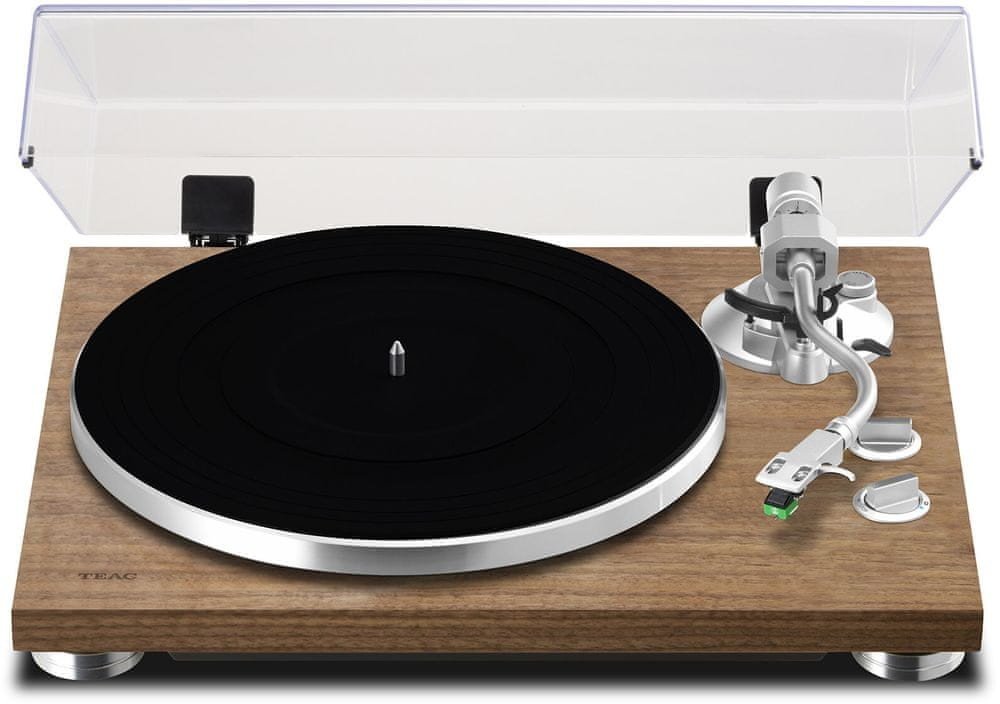 Gramofon TEAC TN-400BT-SE Elegantní výkonný gramofon Teac TN-400BT-SE ve dřevěném designu je ideálním zařízením pro všechny hudební fajnšmekry, kteří si chtějí vychutnat oblíbené melodie ze své vinylové sbírky s detailní a přesnou reprodukcí. Zařízení umožňuje přehrávání desek ve třech rychlostech, a to při 33, 45 a 78 otáčkách za minutu. Gramofon je vyroben z prvotřídních materiálů a je vybaven kvalitní MM přenoskou. Disponuje řemenovým pohonem, hliníkovým talířem s filcovou podložkou, ramínkem ve tvaru S, vestavěným EQ předzesilovačem a RCA výstupy. Před prachem ho ochrání plastový kryt, který zabrání nadměrnému usazování nečistot. Moderní vybavení Vychutnejte si autentický zvuk plynoucí z vinylových desek. Technologie Bluetooth zajistí jednoduché spárování se sluchátky nebo reproduktory. Bezdrátový přenos hudby podporuje kodeky apt-X, AAC a SBC pro zachování kvality zvuku. S určitostí potěší i integrovaný EQ předzesilovač a RCA pozlacené výstupy. Gramofon Teac TN-400BT-SE tak snadno připojíte i k zesilovači nebo HiFi systému, který nedisponuje Phono vstupem.