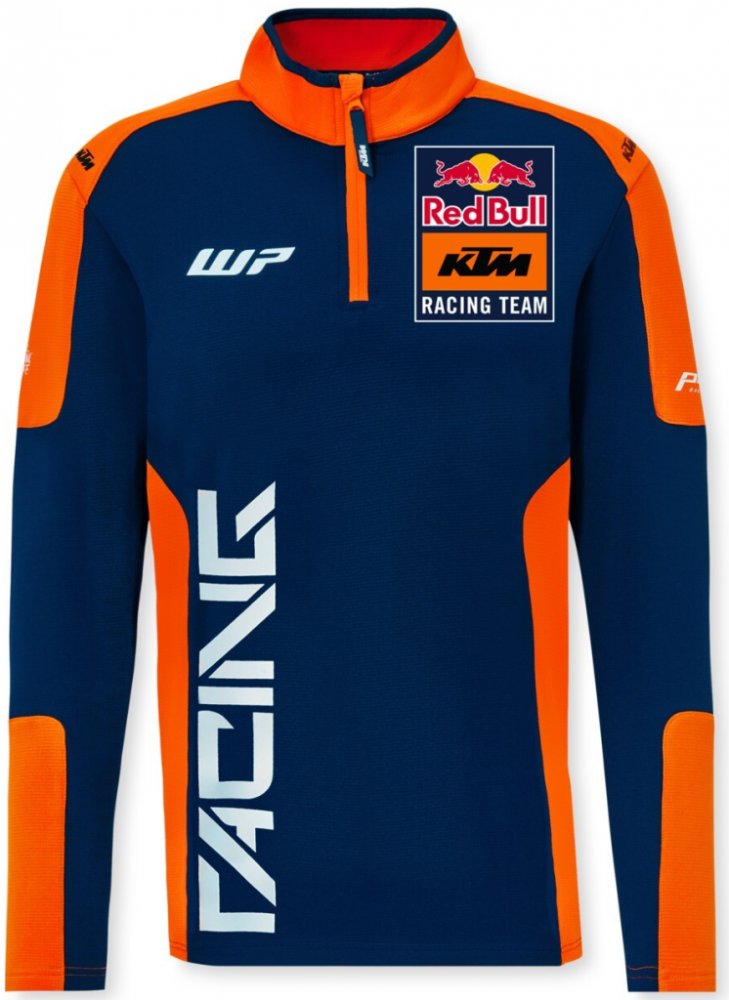 Týmová mikina KTM Red Bull Racing z oficiální kolekce poslouží jako perfektní parťák do každého počasí. Skvělý doplněk na závodní dráhu. Lehká mikina vyrobena s funkčního materiálu. Složení: 96% polyester, 4% elastan Chrání před větrem velký potisk na zádech