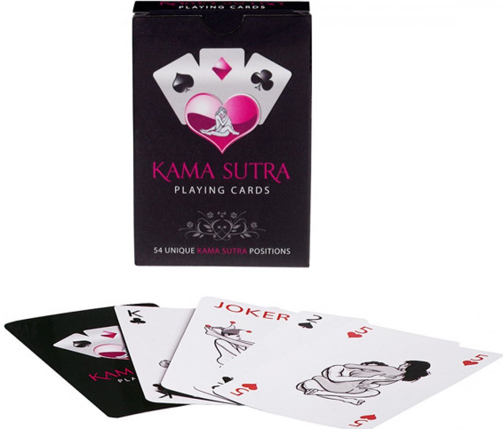Balíček obsahuje 54 hracích karet. Na každé kartě je obrázek erotické polohy z Kamasútry.