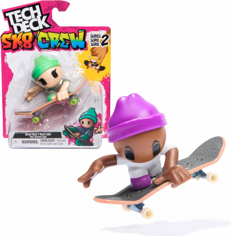 Naučte se jezdit na fingerboardu se zbrusu novými sadami Tech Deck Sk8 Crew. Každý balíček je dodáván s prknem Tech Deck a členem týmu Sk8 Crew. Posbírejte všech 6 figurek Sk8 Crew, vypilujte své dovednosti a ovládněte triky jako ollie a power slide. Připevněte skateboardistu na prkno a začněte cvičit. Naskenujte QR kód, zhlédněte video tutoriály a naučte se své oblíbené triky. Vezměte svůj tým Sk8 Crew na dobrodružství v Ultra Sk8 Bus. Ještě lepší triky a více prostoru pro váš tým Sk8 Crew (prodávají se samostatně). Prohánějte se po okolí a sjíždějte zábradlí s novými fingerboardy pro děti řady X-Connect. Sestavte si sady ramp Quarter Bowl Ruckus nebo Pyramid Shredder 2.0 (každá se prodává samostatně) a podrťte svá prkna na oblíbených fingerboardových překážkách, jako je Tech Deck Skatepark. K dispozici je spousta prken, figurek a hracích sad, které můžete sbírat! Užijte si jízdu, otočky a skoky na překážky s fingerboardy a BMX koly Tech Deck od skutečných skatových společností! Miniaturní prstové skateboardy a sady s rampami Tech Deck jsou ideálním dárkem pro dívky ve věku od 6 do 8 let, které milují malé a trendy hračky. Hledáte hračky pro chlapce? Zvažte Tech Deck jako alternativu k autíčkům pro chlapce ve věku 6–8 let. Začněte v malém, rozjeďte to ve velkém a prozkoumejte svět fingerboardingu s Tech Deck Sk8 Crew. Nelze vybrat konkrétní druh, dodáváme dle skladové dostupnosti.