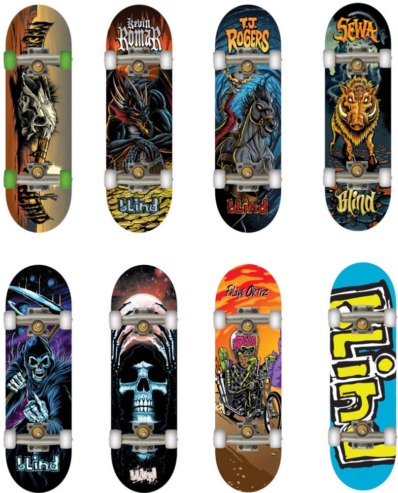 Tyhle malé skateboardy ovládáš pomocí prstů. Nauč se co nejvíce triků. V balení najdeš 1 sestavené prkno, 5 prken k sestavení, 5 sad náhradních koleček, 4 trucky, samolepky, mini nářadí. Vhodné od 6 let.