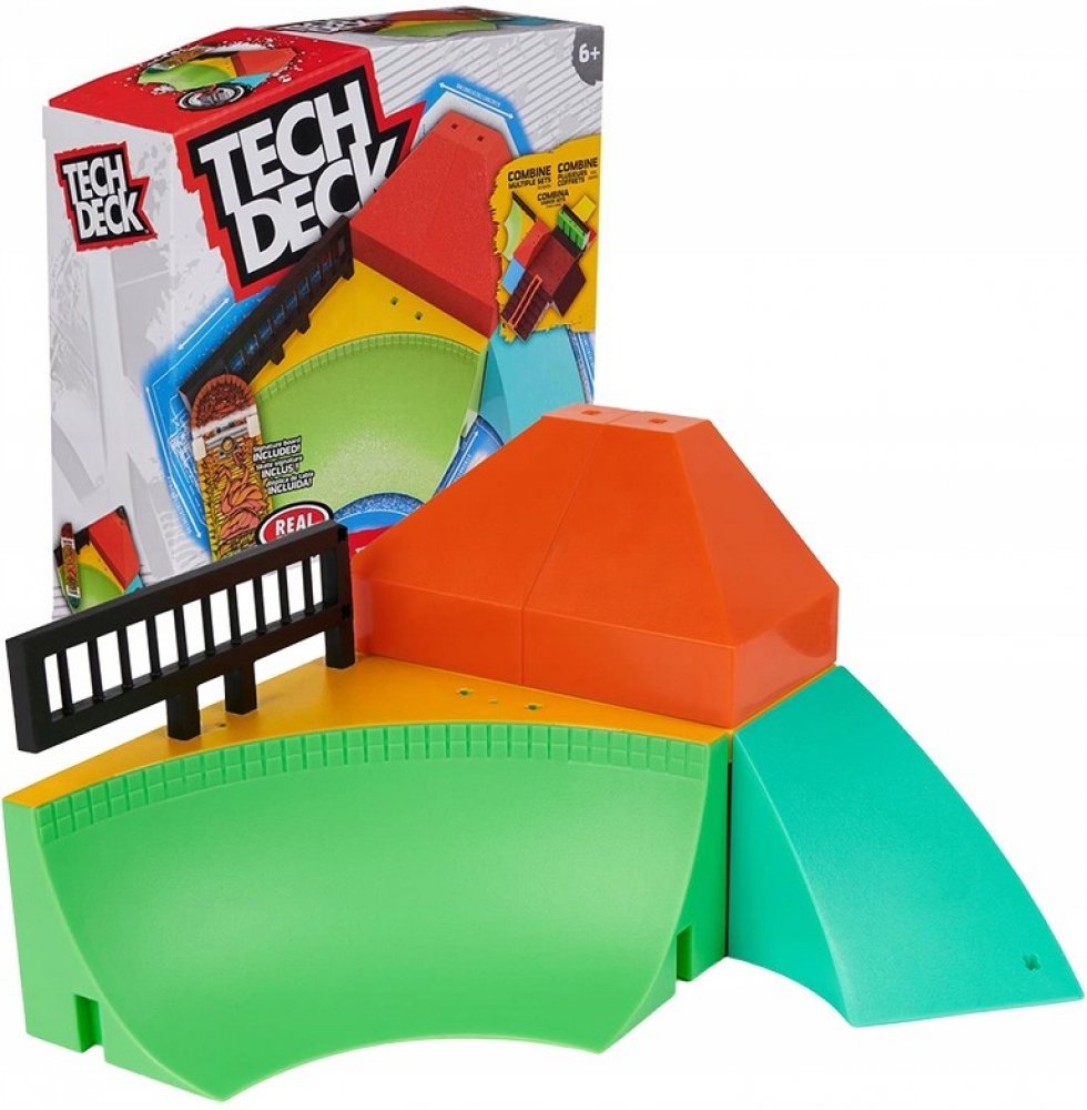 Vyzkoušejte různé kombinace s trojúhelníkovou rampou, malými pyramidami, zábradlími a nájezdovými rampami, abyste se naučili nové triky a zdokonalili ty, které už umíte. Seskočte z pyramidy, řízněte to kolem rohu a sjeďte po zábradlí nebo si vše nastavte a přizpůsobte podle sebe. Skejtujte v parku s exkluzivním profi fingerboardem Real Skateboards, který je součástí balení, a rozšiřte tak svou sbírku mini skateboardů.