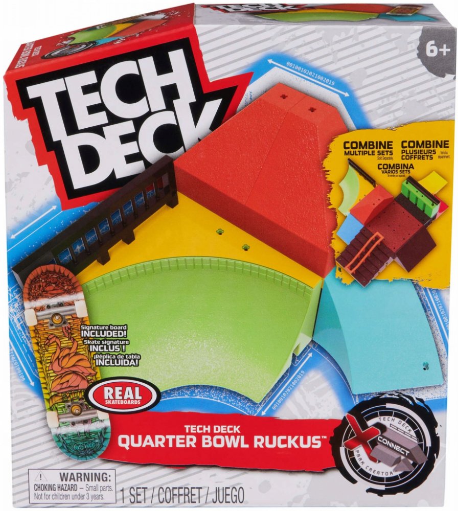 Šlápněte do toho s Tech Deck, prvotřídními fingerboardy s autentickým designem od skutečných skate firem! Sada ramp Quarter Bowl Ruckus X-Connect Park Creator obsahuje vše, co potřebujete k vybudování vlastního parádního parku pro zdokonalení svých dovedností s fingerboardy.