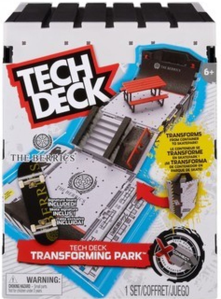 Tech Deck X-Connect velký kufr rozložitelný na skatepark. Je široký 76 cm a je věrnou kopií světoznámého skateparku The Berrics v Kalifornii. Obsahuje různé rampy a překážky. Obsahuje: 1 Tech Deck Fingerboard, 1 rozložitelná základna, 2 Hubba Ledges, 1 schody, 2 nájezdové rampy, 1 Mounted ramp, 1 piknikový stolek, 1 zábradlí, 6 X-konektorů, 1 rukojeť, 2 archy se samolepkami, 6 X-Connect krytů, Instrukce.