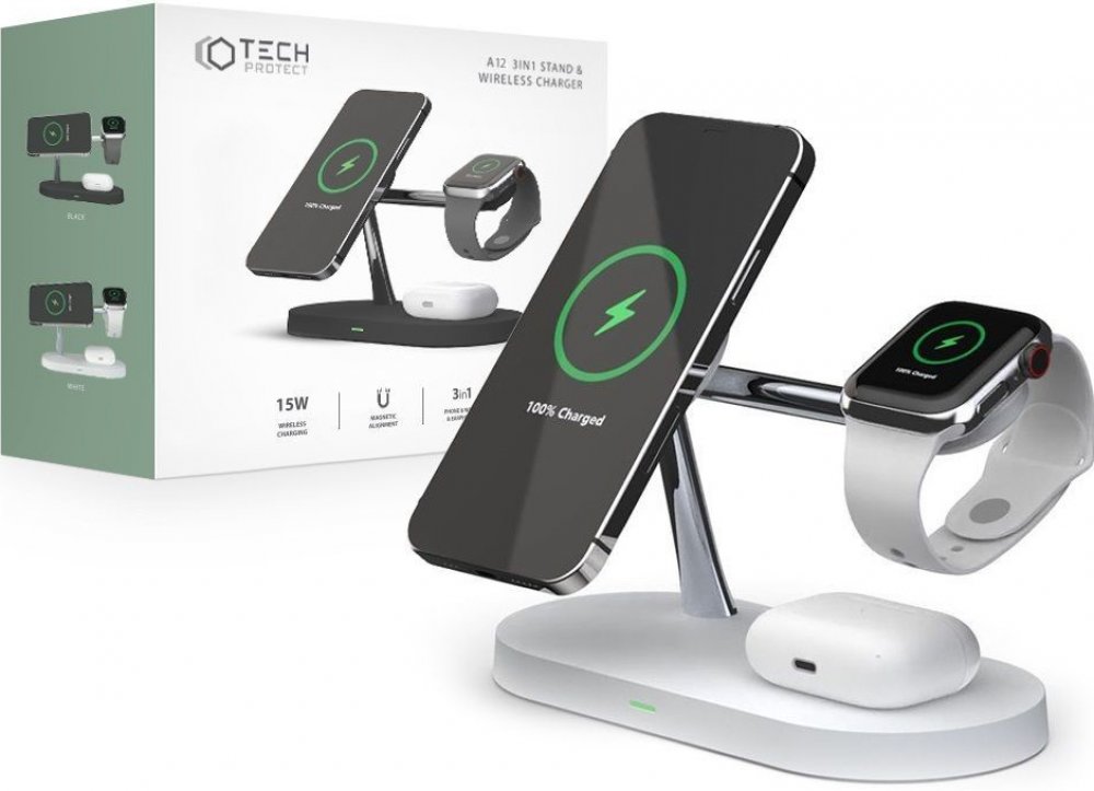 Tech-Protect A12 3in1 Stand & Wireless Charger bílá