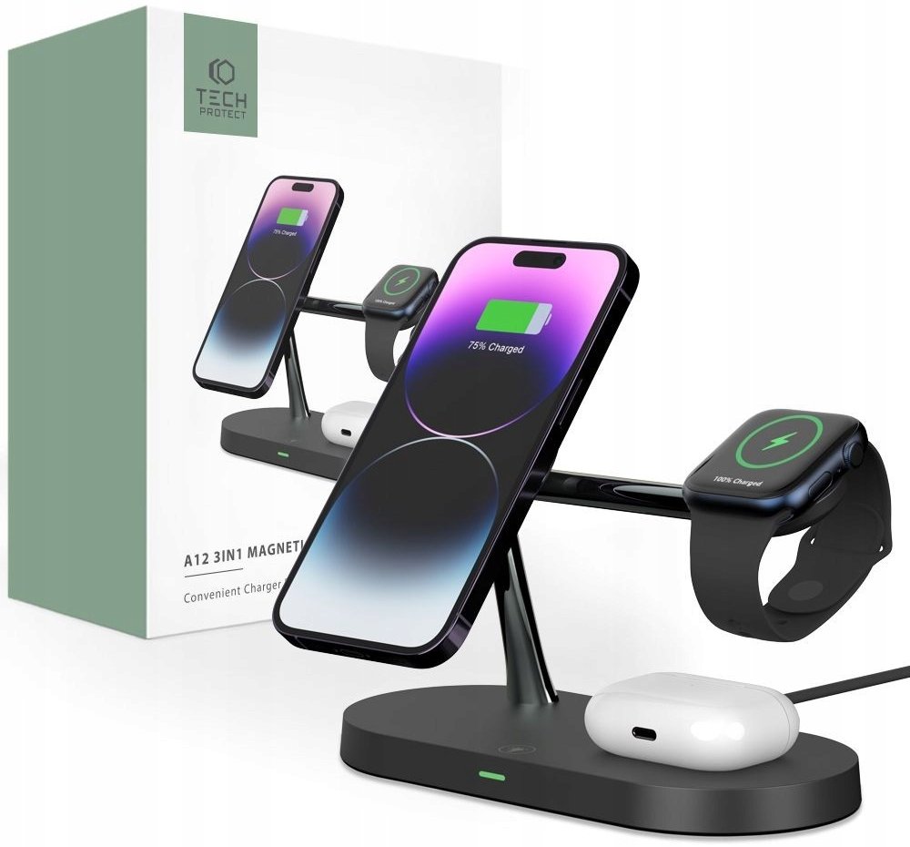 Tech-Protect A12 3in1 Stand & Wireless Charger černá