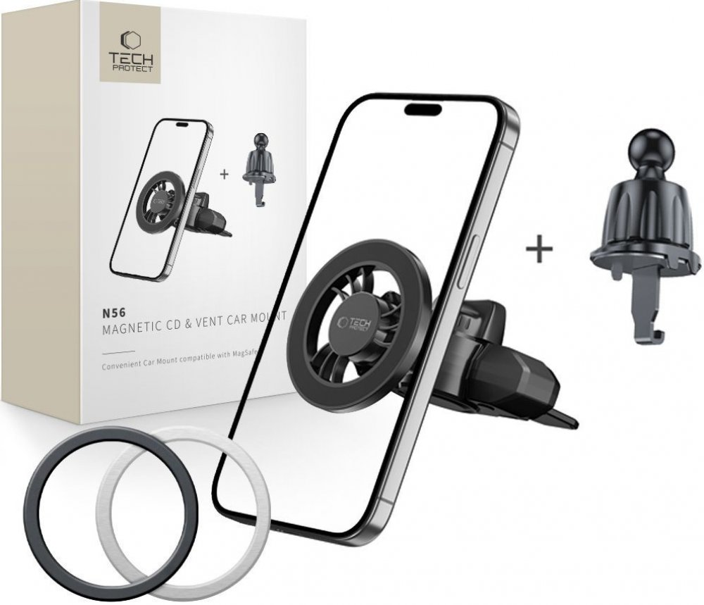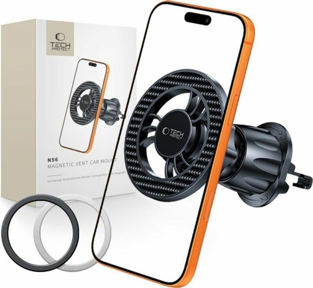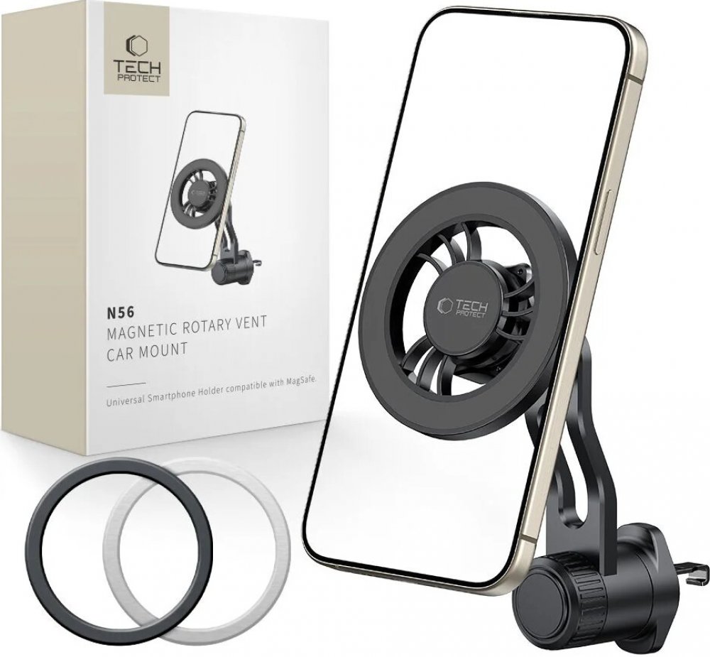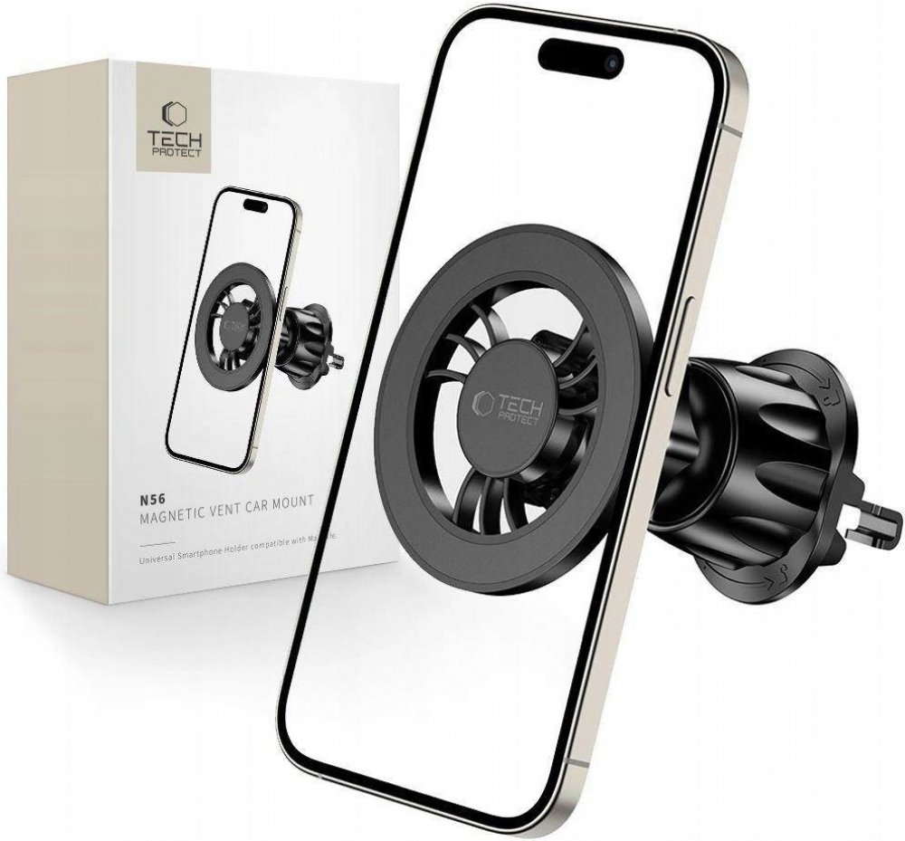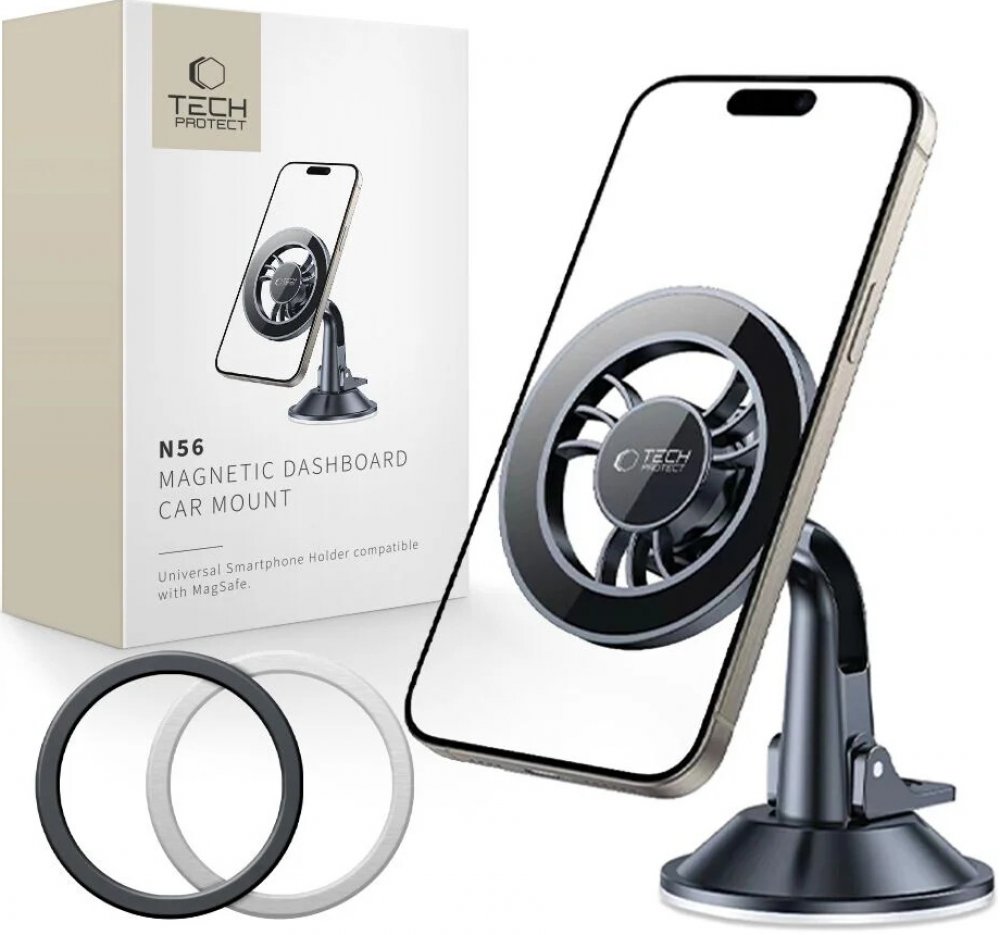 Držák do auta N56 značky Tech-Protect je vybaven inovativním systémem upevnění Magsafe. Díky silným magnetům je montáž a demontáž smartphonu rychlá a snadná a je zajištěno stabilní držení zařízení během jízdy.