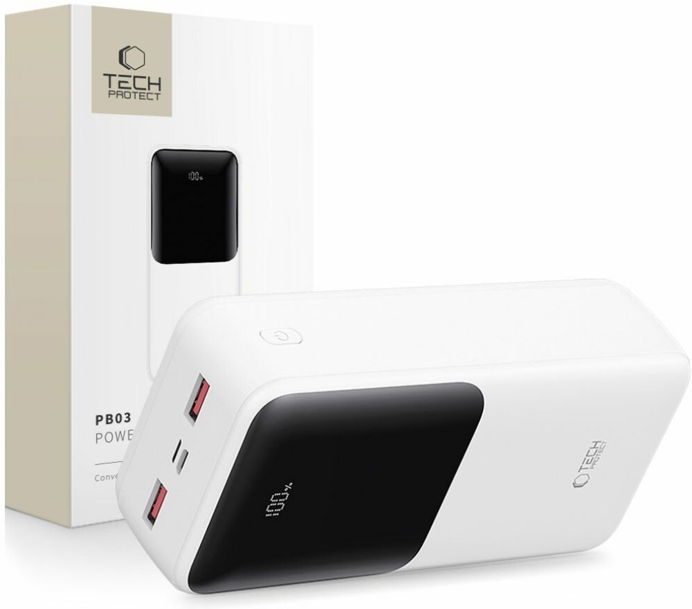 Tech-Protect PB03 je nepostradatelný společník, který vám dodá energii, ať jste kdekoli. Vsaďte na spolehlivost a obrovskou kapacitu - zvolte Tech-Protect PB03 a zapomeňte na problémy s vybitými zařízeními!