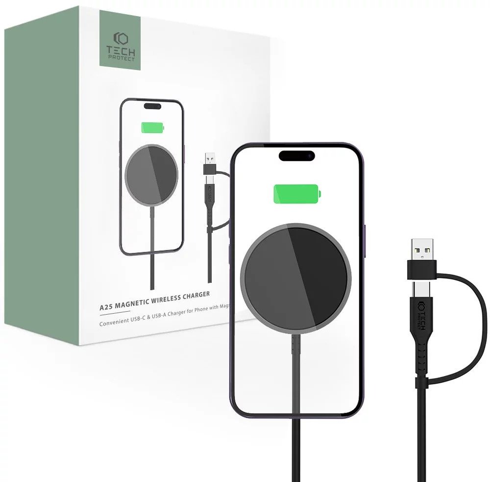 Bezdrátová nabíječka Tech-Protect QI15W-A25 je moderní zařízení, které poskytuje rychlou a pohodlnou obnovu energie bez nutnosti použití nabíjecího portu.