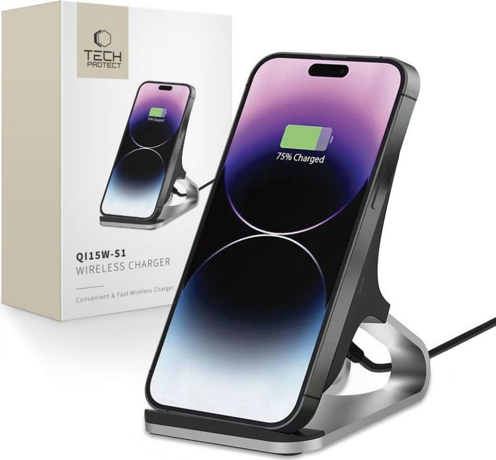 Univerzální nabíječka S1 od společnosti Tech-Protect kombinuje praktickou kolébku s možností rychlého a bezpečného obnovení napájení smartphonu. Zařízení je vybaveno vestavěnou dvojitou cívkou, která nám umožňuje nabíjet telefon ve svislé i vodorovné poloze, takže máme možnost telefon během nabíjení používat ke sledování videí nebo pořizování fotografií.