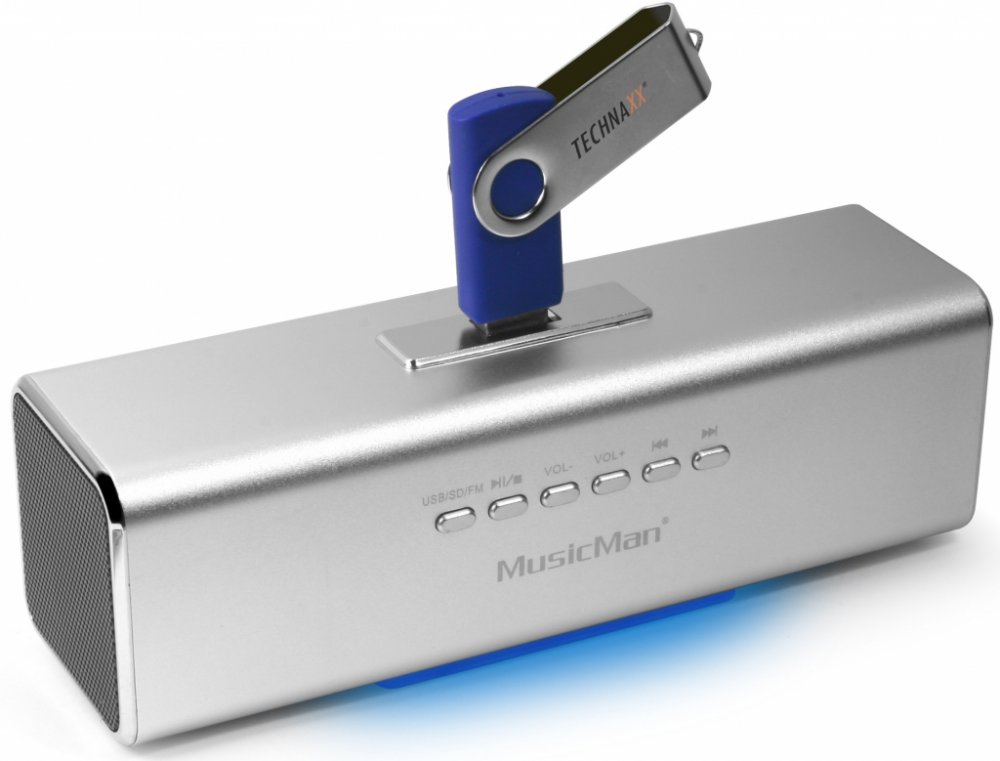 Přesnosný stereo reproduktor MusicMan s vestavěnou baterií pro maximální mobilitu. Integrovaný MP3 přehrávač podporuje přehrávání hudby z mnoha zařízení, např. MP3, CD, DVD, iPhone, iPad, PC, mobilního telefonu, atd. Nechybí ani FM-radio.