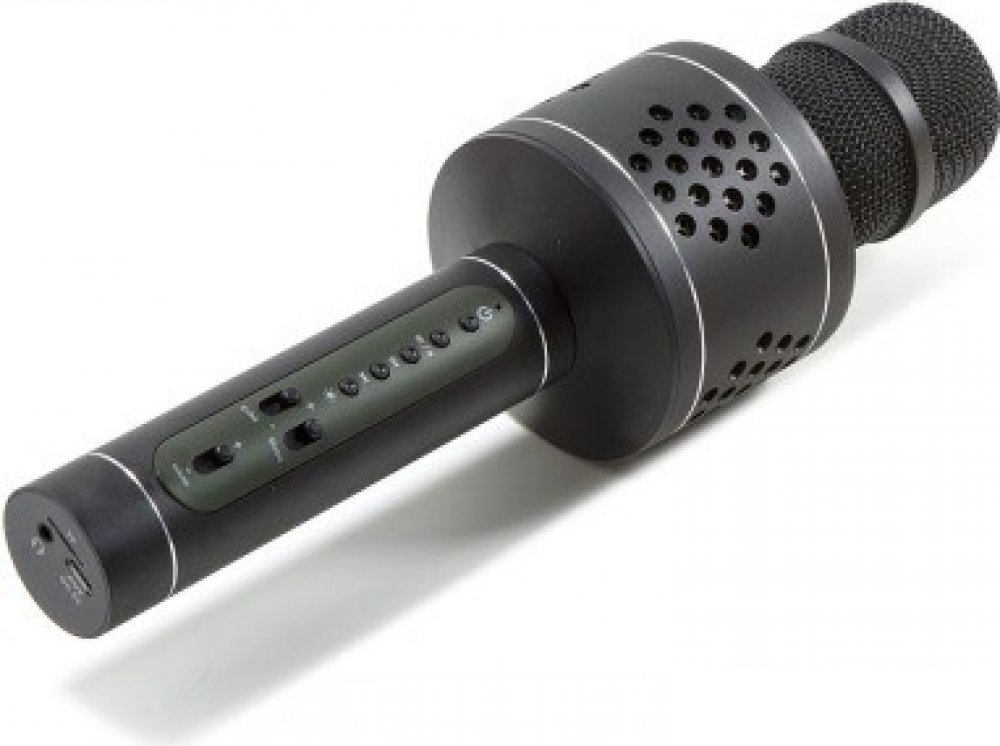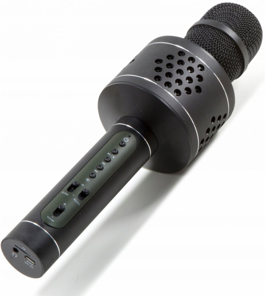 Tlačítky umístěnými na rukojeti můžete přepínat skladby, ovládat hlasitost doprovodné hudby a efekt ozvěny, přepínat LED osvětlení mikrofonu. Na spodní straně mikrofonu je umístěn microUSB konektor pro nabíjení, AUX-IN vstup a slot pro paměťovou kartu MicroSD až 32 GB.